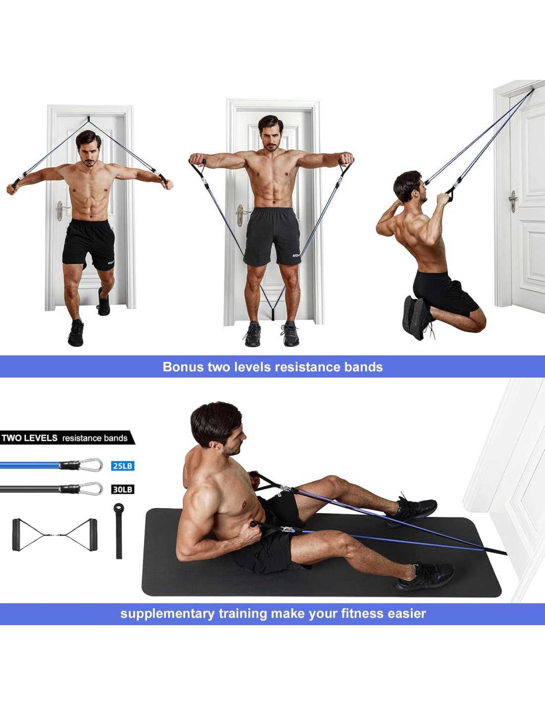 - GIMNASIO EN CASA MULTIFUNCIONAL: Te presentamos un juego adicional de bandas de resistencia de alta calidad. El paquete incluye 2 bandas de resistencia (1 de 30lb (13.61 kg) y 1 de 25lb (11.34 kg)), 2 mangos, 1 ancla para puerta. Apunta a múltiples músculos de la parte superior del cuerpo y del core con dominadas, flexiones, fondos y abdominales colgantes, múltiples funciones reemplazan todo otro equipo. Con esta barra de dominadas, el hogar y la oficina se convierten en tu gimnasio y puedes hacer ejercicios de manera rápida.
