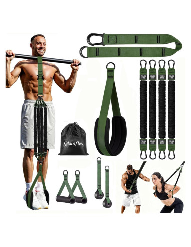 Transforma tu rutina de entrenamiento de resistencia con bandas de dominadas con este completo conjunto de bandas de asistencia GlamFlex. El sistema de bandas de resistencia para dominadas incluye múltiples bandas de resistencia para asistencia en dominadas con correas de banda de dominadas de ritmo rápido y mosquetones de metal seguros, perfectos para dominar las bandas de resistencia para dominadas y desarrollar fuerza en la parte superior del cuerpo con bandas para dominadas asistidas. Cada banda de dominadas de ritmo rápido cuenta con una construcción duradera con calificaciones de peso claramente marcadas de hasta 34 kg (75 lbs), lo que te permite aumentar progresivamente tu fuerza a medida que mejoras para la máquina de dominadas y dips asistidos. El conjunto de bandas de asistencia para dominadas kutize viene completo con cómodas asas de bandas de resistencia, correas para los pies y dos anclajes para puerta para opciones de ejercicio versátiles. Bandas de resistencia para dominadas para mujeres, ya seas un principiante trabajando en tu primer entrenamiento con bandas de resistencia innstar o un atleta avanzado buscando mejorar tu entrenamiento de dominadas jayflex, estas barras de dominadas asistidas proporcionan soporte y resistencia confiables. La bolsa de almacenamiento incluida para las bandas de asistencia para dominadas mantiene tu equipo organizado y portátil. Las correas para dominadas para la barra de dominadas y la costura reforzada aseguran un rendimiento duradero a través de innumerables entrenamientos para la banda de asistencia para dominadas. Estas bandas de asistencia para dominadas de alta resistencia también se pueden usar para estiramientos, trabajo de movilidad y ejercicios de rehabilitación, convirtiendo las bandas de calistenia y las bandas de dominadas en una adición versátil a cualquier arsenal de fitness. Comencemos con nuestras bandas de resistencia para dominadas asistidas, obtendrás unas excelentes bandas de resistencia para entrenamiento de fuerza.