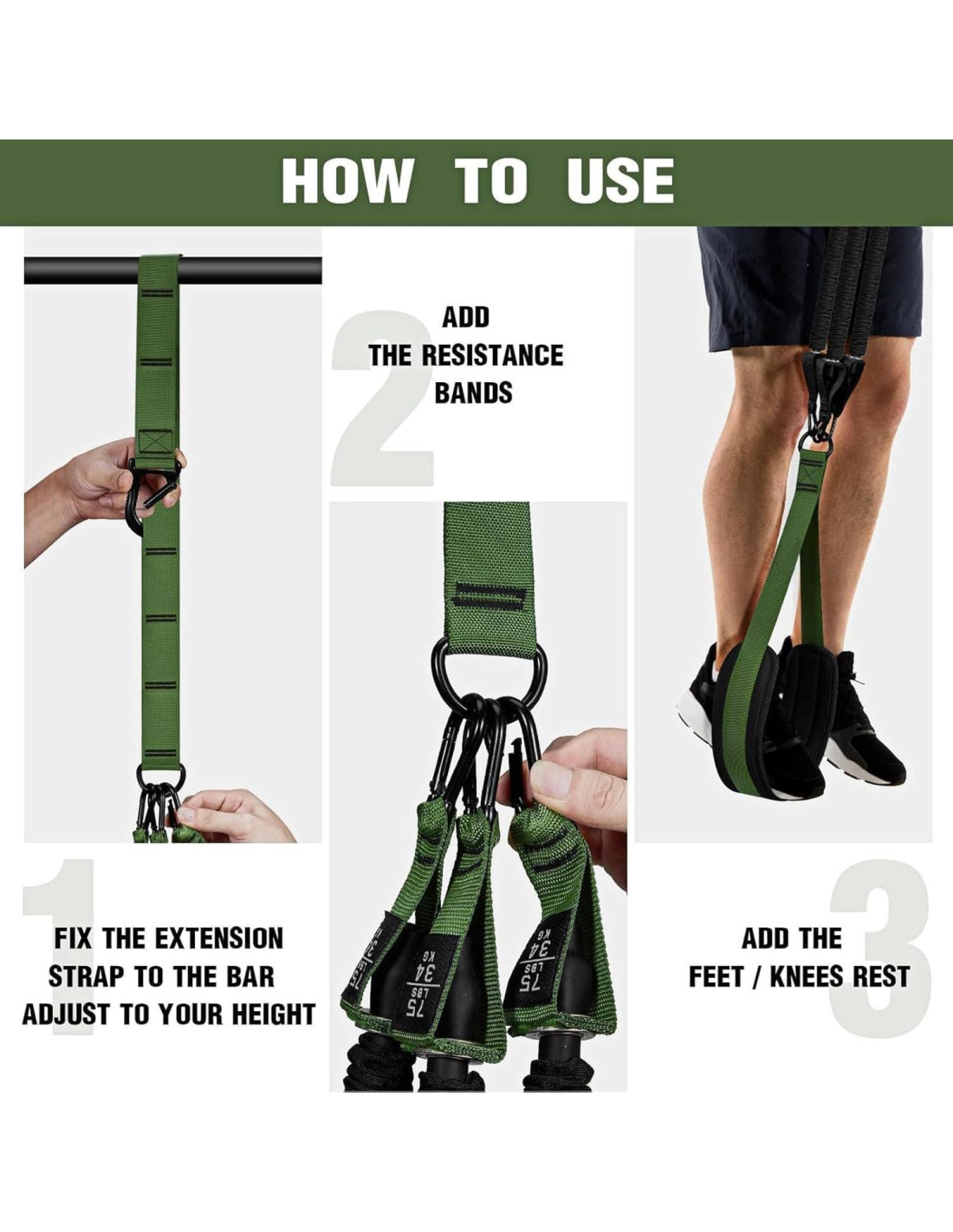 - Componentes incluidos: 1 Correa de Extensión, 1 Sling de Almohadilla de Esponja Colgante, 2 Anclajes de Puerta de Espuma, 2 Asas de Caucho, 4 Tubos de Caucho Natural de Látex