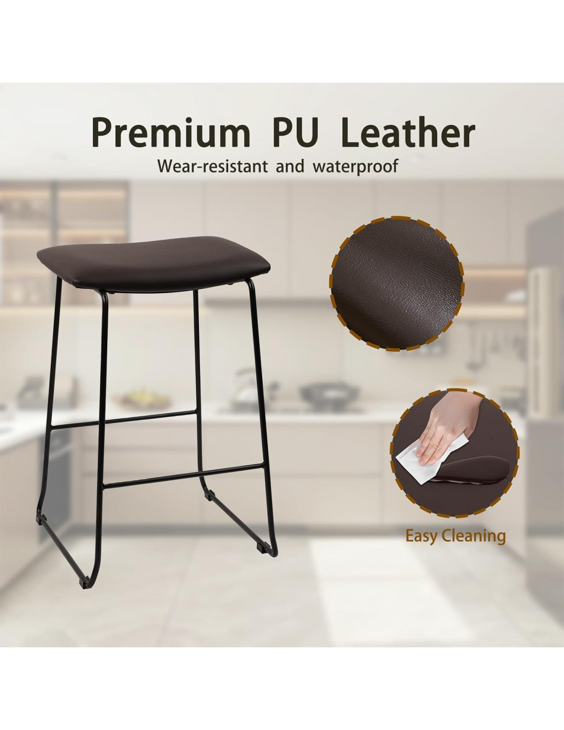 - Elegante y Funcional - Los taburetes de bar apilables de altura de contrabarra Klasika tienen un marco de metal negro y un diseño de cuero PU marrón que se complementan entre sí y exudan sofisticación moderna. El cojín curvado hace que esta silla sea elegante y cómoda, adecuada para diferentes lugares.