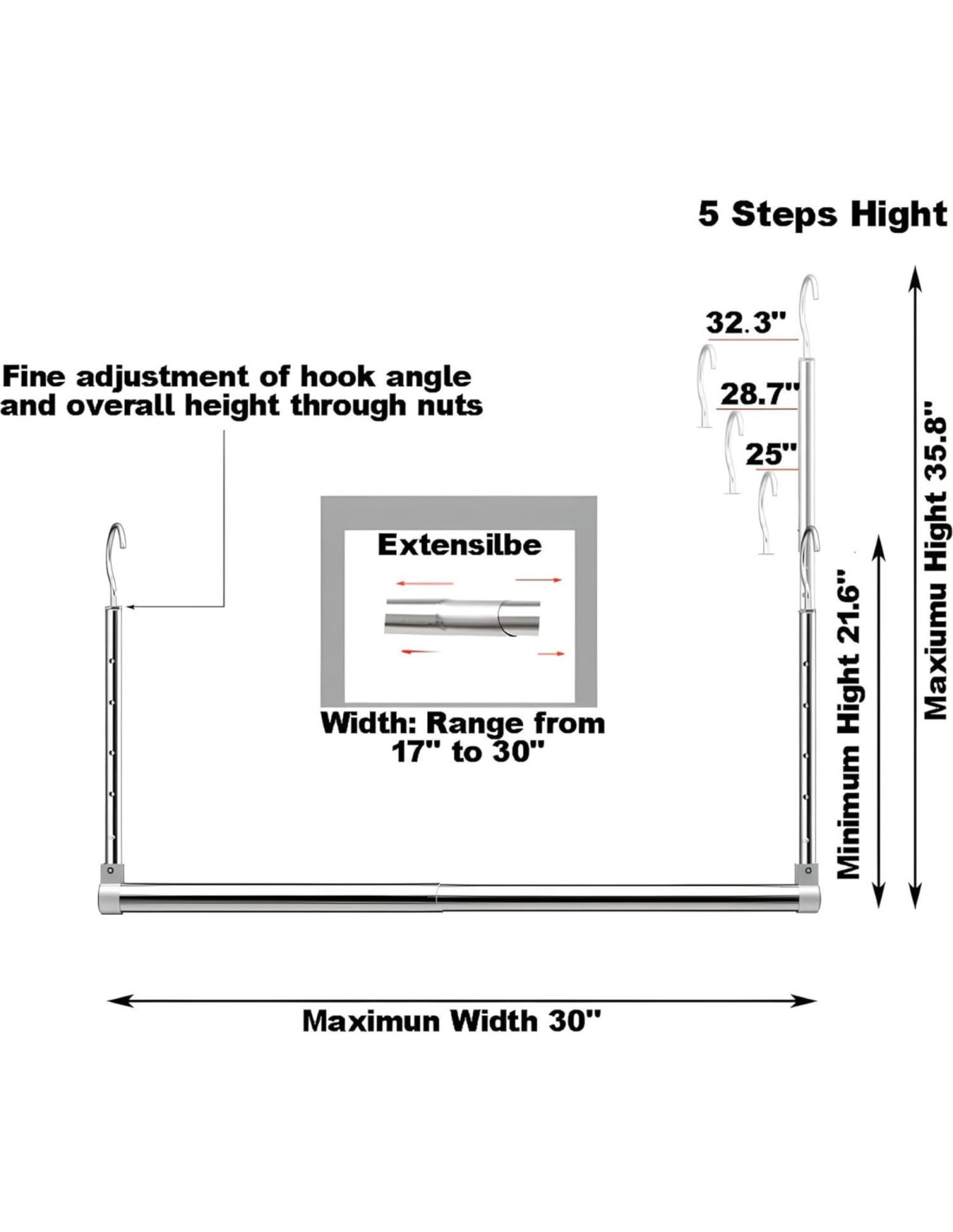 - Diseño Extensible: El diseño extensible de esta barra de ropa permite ajustes en longitud de 43 cm a 76 cm, y altura de 55 cm a 84 cm con 5 pasos, sin necesidad de herramientas para instalar. Puede ahorrar el doble de espacio en tu habitación.