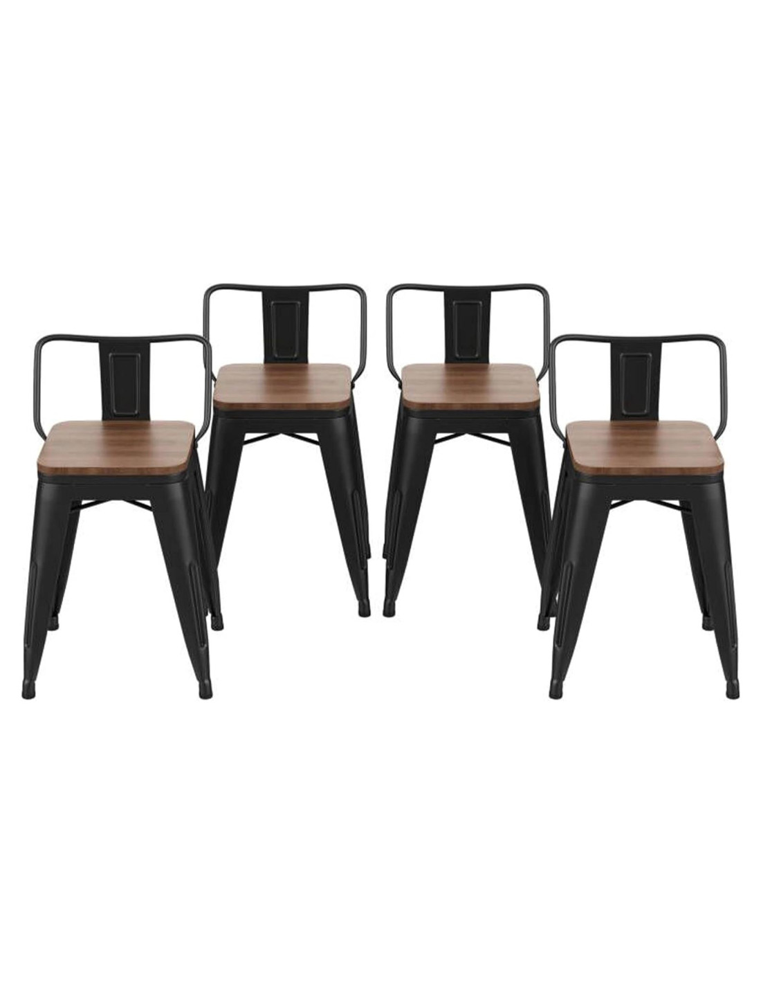 - Juego de 4 taburetes de bar de altura de mostrador de metal. Con respaldo desmontable, se puede usar como taburetes sin respaldo o apilar para ahorrar espacio cuando el respaldo está quitado