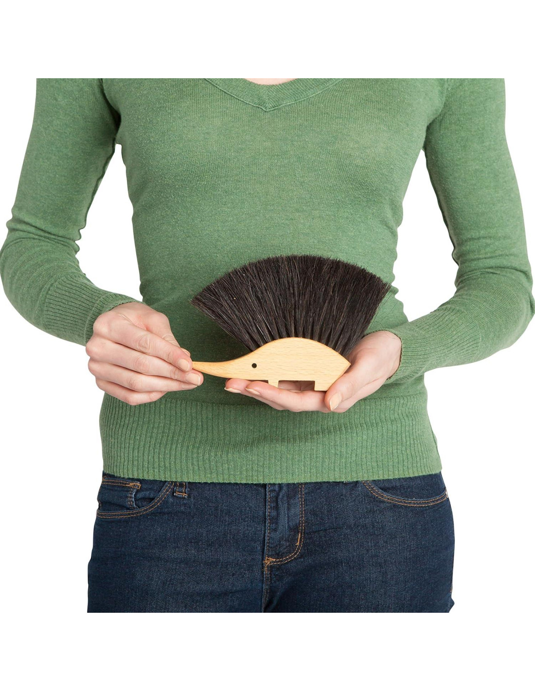 Presentamos el Cepillo de Mesa Erizo REDECKER, una herramienta versátil y encantadora diseñada para mantener tus espacios limpios. Con su forma única y linda de erizo, este cepillo de 11.4 x 14 cm cuenta con cerdas de caballo natural, asegurando una limpieza eficiente sin rayar superficies delicadas. Hecho a mano en Alemania, el cepillo erizo combina funcionalidad con una estética atractiva. Los beneficios de usar este cepillo de cerdas son numerosos. Las suaves pero densas cerdas de caballo barren eficazmente partículas finas como polvo, arena y suciedad, lo que lo convierte en un cepillo de caballo ideal para limpiar mesas. Además, su tamaño compacto y su mango ergonómico lo hacen cómodo de usar durante períodos prolongados, proporcionando una solución práctica para mantener las superficies limpias. Este cepillo de mesa para migas es particularmente útil para resolver problemas cotidianos como limpiar migas de mesas de comedor o polvo de teclados de computadora. El cepillo de polvo REDECKER también es perfecto para eliminar desechos de áreas de manualidades, asegurando un espacio de trabajo ordenado. El diseño del cepillo de mostrador REDECKER le permite alcanzar espacios estrechos, lo que lo convierte en un excelente cepillo para teclados hecho en Alemania. Las características únicas del cepillo erizo REDECKER incluyen su mango de madera de haya natural aceitada, que es altamente resistente al desgaste, asegurando durabilidad para el uso diario. El plumero erizo también es una alternativa ecológica a las toallas desechables y servilletas de papel, ofreciendo una solución de limpieza sostenible. El mango de madera de haya hecho a mano y las cerdas naturales añaden un toque de elegancia a cualquier rutina de limpieza. Para el cuidado y mantenimiento, simplemente enjuaga las cerdas del cepillo de migas suavemente en agua tibia y deja secar al aire. Los materiales de alta calidad del cepillo natural erizo aseguran un rendimiento duradero, aunque el cuerpo de madera sin tratar puede variar ligeramente en color debido a sus propiedades naturales.