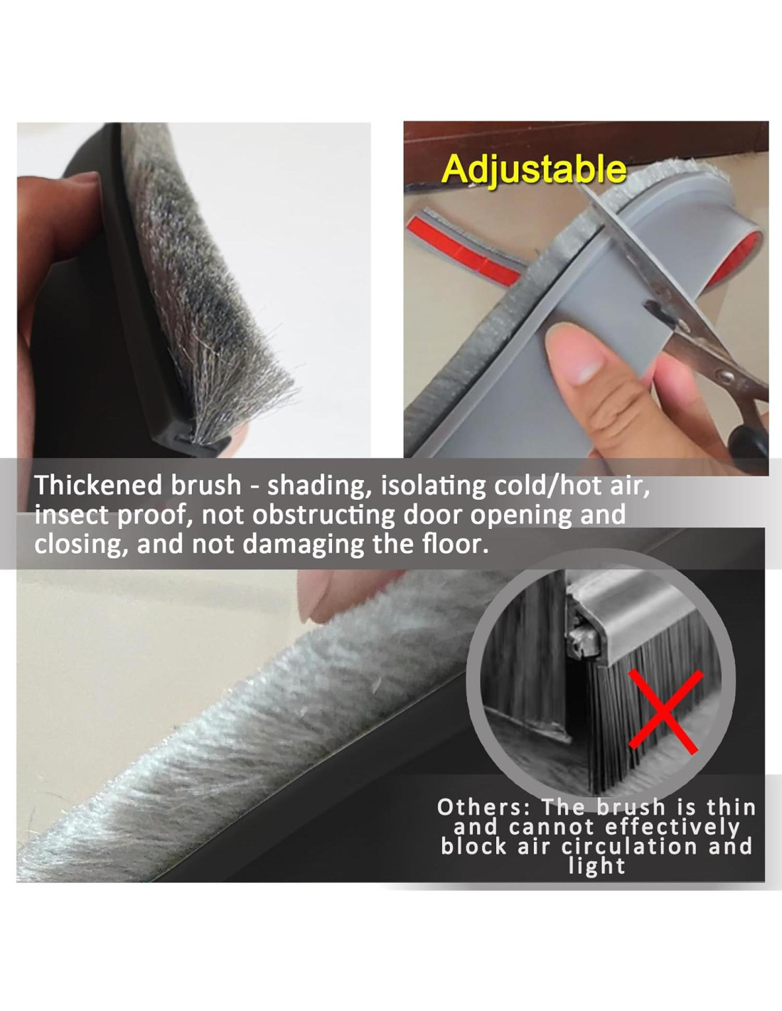 - [Material de Barrera de Aire] La barrera de aire está hecha de goma TPE de alta calidad, flexible y fácil de ajustar. Cepillo de alta densidad, bloquea la luz y el aislamiento acústico, adecuado para cualquier piso, especialmente alfombras, pisos irregulares, pisos de goma y pisos pintados. Previene sonidos fuertes y bloquea la apertura y cierre de la puerta.