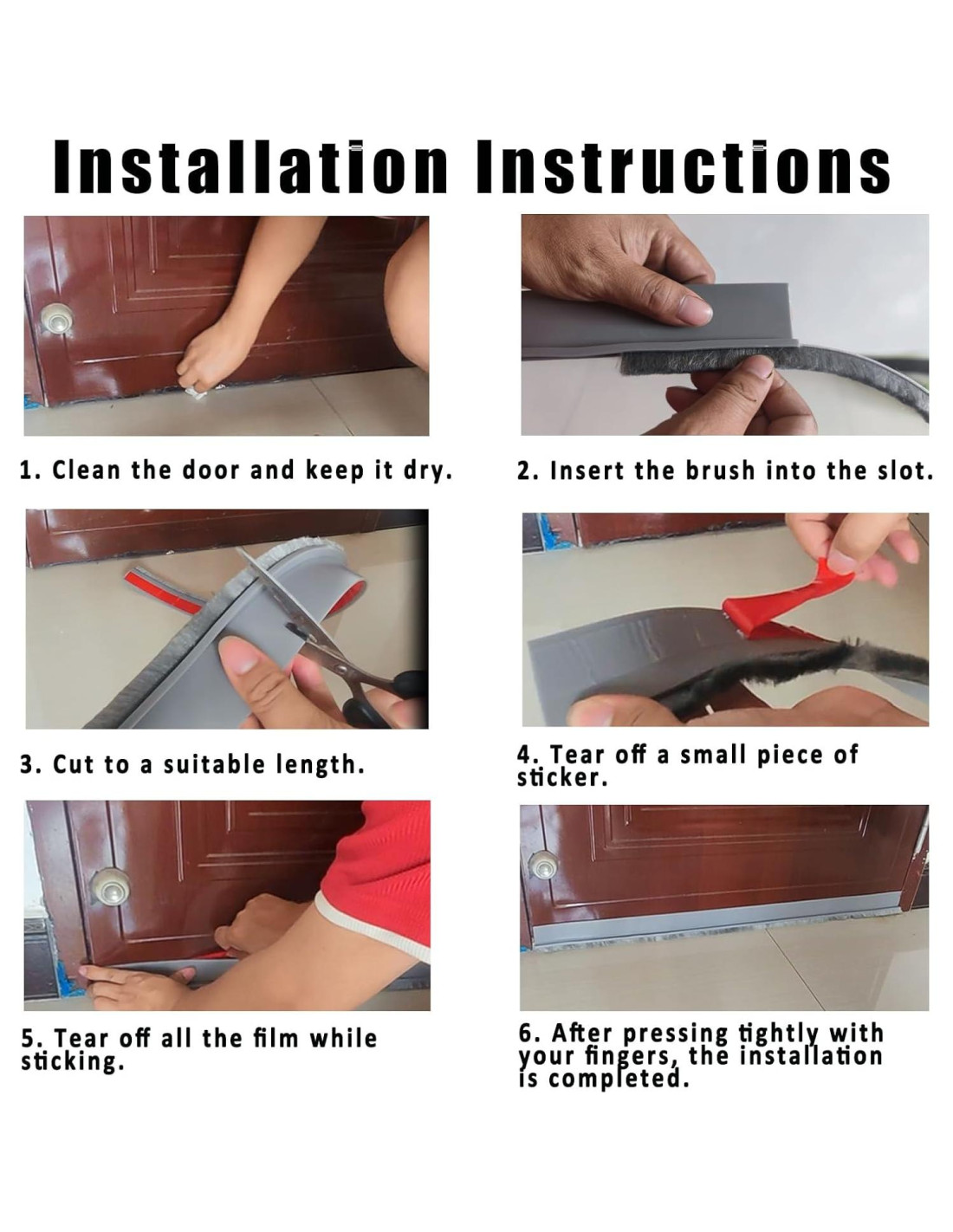 - [Sello de Puerta Fácil de Instalar] Corta la barrera de aire de acuerdo al ancho de la puerta, quita el adhesivo especial y pégalo en la parte inferior de la puerta, y la instalación está completa. El tope de draft para puerta puede usarse para tu puerta principal, puerta trasera, puerta de entrada del garaje, puerta del dormitorio, puerta del baño.