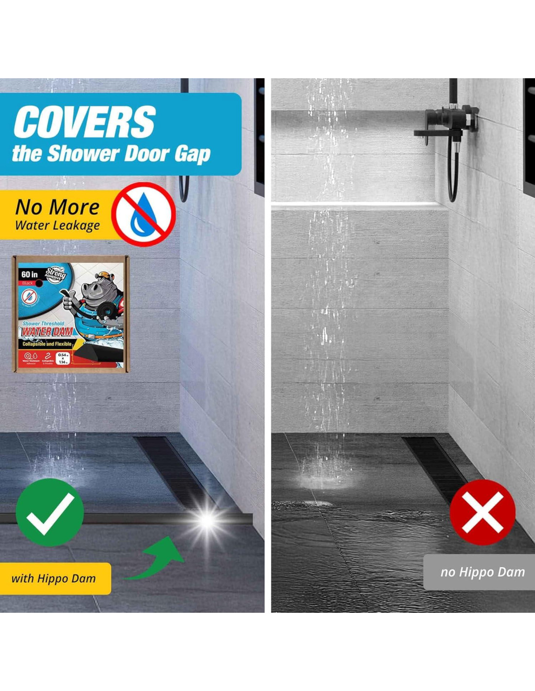 - [GRAN BARRERA DE AGUA PARA UMBRAL DE DUCHA] Hecha de goma flexible de alta calidad, nuestra barrera de agua para el borde de la ducha Hippodam previene fugas y asegura durabilidad a largo plazo. Ideal para diversas configuraciones de baño, mantiene los pisos secos y seguros contra daños por agua.