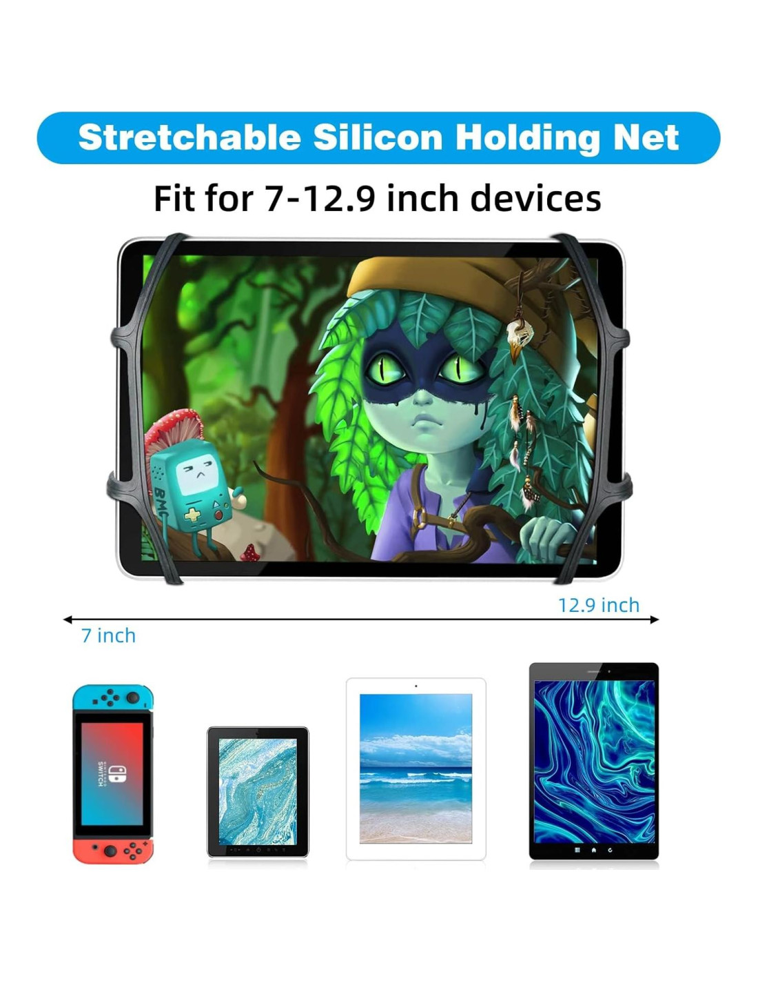 - Ajuste para Todas las Tabletas de 7 - 12.9 Pulgadas: Adoptado la red de sujeción de silicona de alta elasticidad recién mejorada, adecuada para todos los dispositivos de 7" (17,78 cm) a 12.9" (32,77 cm), adecuada para iPad Pro Air, Kindle Fire Hd, Tabletas, iPad Mini, Galaxy Tab S8/S7, etc. Ángulos de visualización horizontales y verticales ajustables
