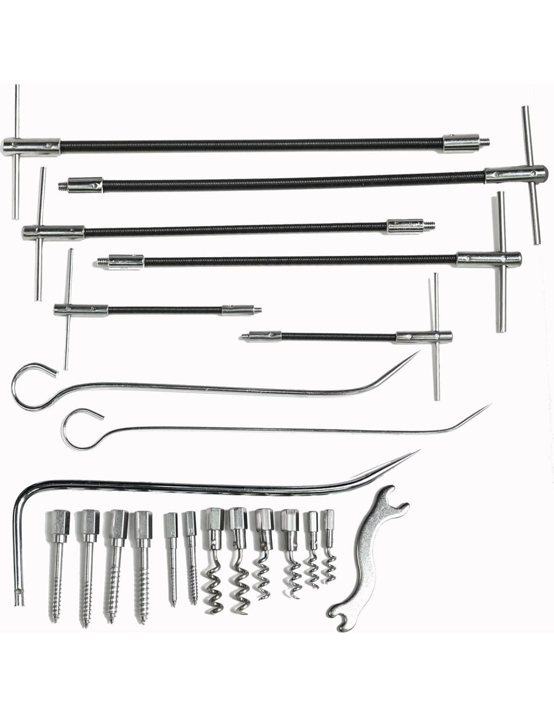 Juego de Extractores de Empaque de 23 piezas, Kit de Extractores de Aleación de Acero, Juego de Ganchos de Sacacorchos de Eje Flexible, Kit de Extracción de Empaque de Glandes, Kit de Caja de Herramientas. Los Ganchos de Extracción de Empaque se utilizan para alcanzar y remover los materiales de empaque de espacios ajustados y de difícil acceso, permitiendo una extracción más fácil sin causar daños. El Juego de Extractores de Empaque incluye ejes flexibles, particularmente útiles al tratar con materiales de empaque que están profundos dentro de un contenedor o son difíciles de acceder. El Juego de Extractores de Empaque es un kit combinado con tamaños completos y varios mangos para abordar diferentes escenarios. Las Herramientas de Extracción de Empaque están hechas de aleación de acero para soportar las duras condiciones de trabajo y el manejo áspero. El Kit de Remoción de Empaque viene con una resistente caja de herramientas de PP para mantener esas 23 piezas bien organizadas y almacenadas, portátil para usar en el campo. PAQUETE 2 x L7-1/2" (19,05 cm) Mango de Eje Flexible 2 x 11" (27,94 cm) Mango de Eje Flexible 2 x 14-1/2" (36,83 cm) Mango de Eje Flexible 1 x L10" (25,4 cm) Mango Rígido de 3,5 mm 1 x Mango Rígido de 5,0 mm 1 x Mango Rígido de 8,0 mm 2 x Punta de Sacacorchos L 2 x Punta de Sacacorchos M 2 x Punta de Sacacorchos S 2 x Punta de Tornillo L 2 x Punta de Tornillo M 2 x Punta de Tornillo S 1 x Llave 1 x Caja de Herramientas
