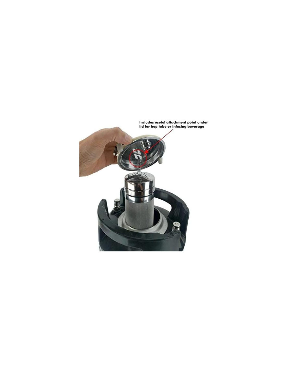 - Finalmente, la tapa de barril mejorada que viene con estos barriles tiene un gancho interior que le permite adjuntar fácilmente bombas de lúpulo o un tubo de lúpulo. Esto hace que el proceso de elaboración sea aún más fácil y conveniente.