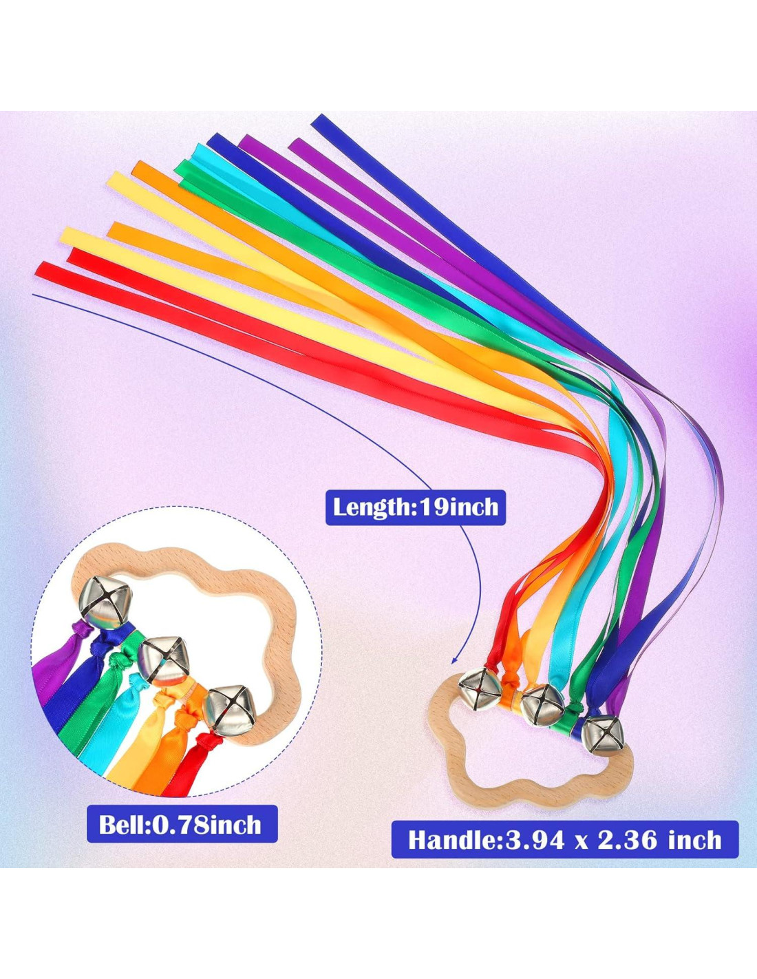 - Amplia aplicabilidad: estas cometas de cinta de madera con campanas son bonitos juguetes para ti, ejercitando su gimnasia artística, danza artística y habilidades corporales suaves, y mejorando la capacidad atlética y la condición física; También pueden ser una bonita decoración para colgar en las puertas del armario