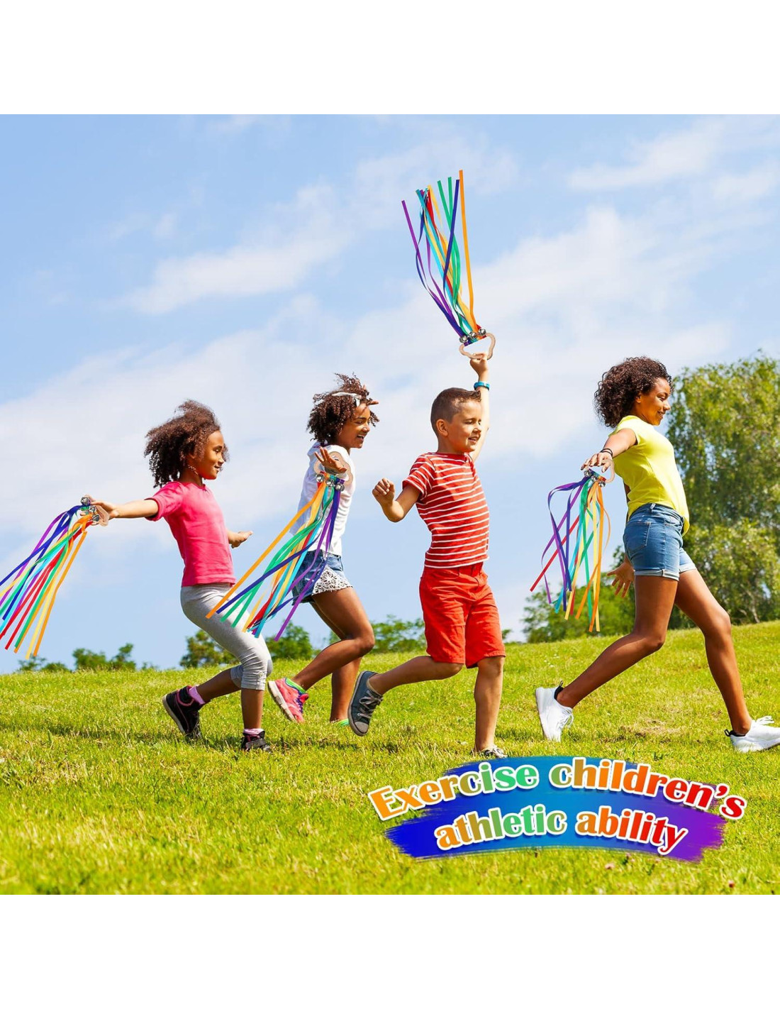 - Color arcoíris: cada cometa de cinta de mano Montessori está atada con tiras de colores ricos, que volarán cuando agites el mango; A tu ser querido le encantará ver estas cintas flotar a su alrededor mientras corren y bailan