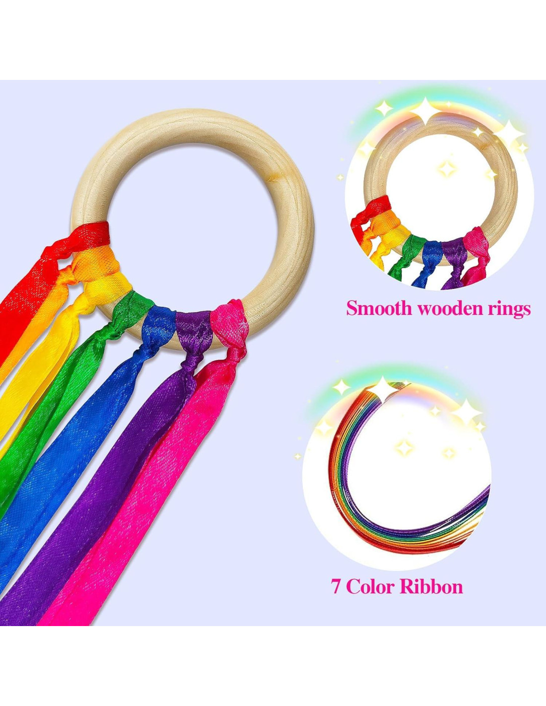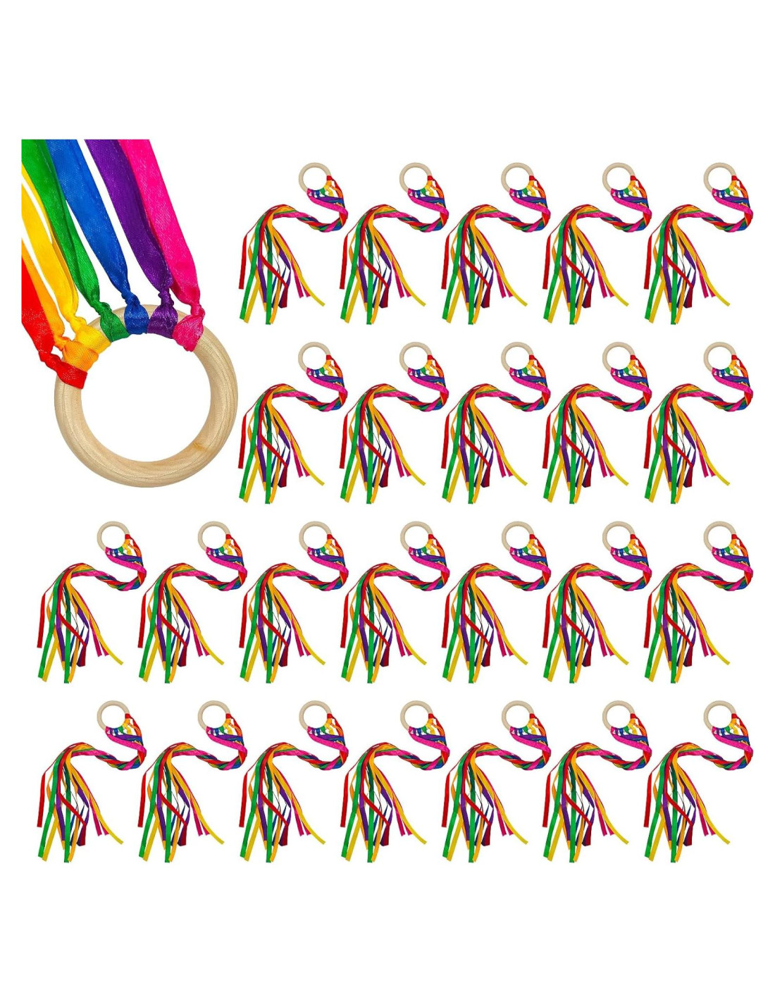 - Tamaño adecuado: Cada anillo mide 2.75" (6.99 cm) de ancho y tiene 7 cintas del mismo tamaño atadas. Cada cinta, cuando está desatada, mide 16.93 pies (5.16 metros) de largo. El anillo de madera no es demasiado grande y se puede sostener fácilmente en la mano, la longitud de la cinta también puede satisfacer tus requisitos.