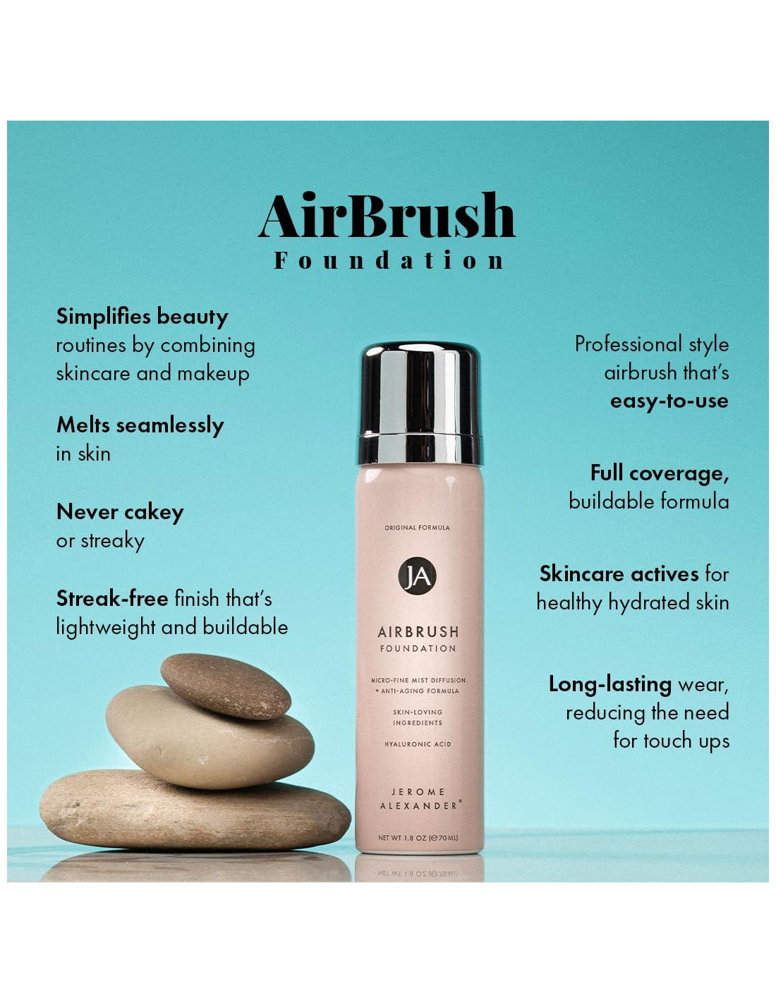 - Belleza Sin Esfuerzo: Experimenta el atractivo de la Base Airbrush de Jerome Alexander. Esta base de maquillaje ofrece una fórmula ultra-ligera, construible y de cobertura completa que crea un acabado impecable y suave como la seda, haciéndote sentir hermosa sin esfuerzo todos los días.