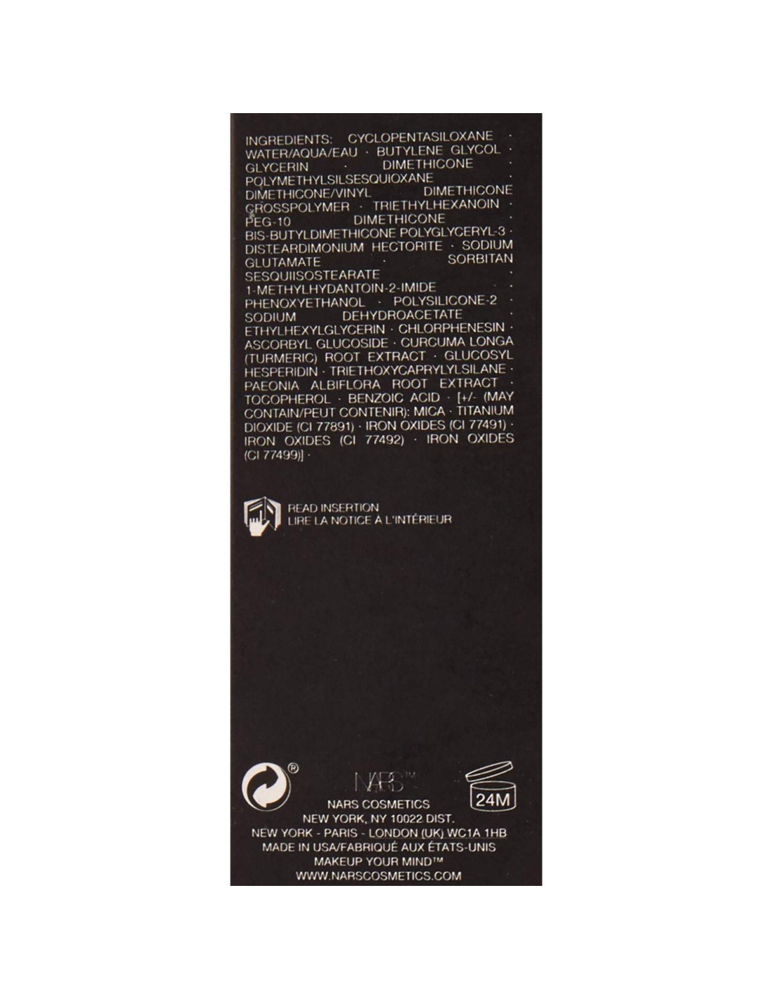 Una base de maquillaje ligera que proporciona cobertura construible Ayuda a igualar el tono de la piel y aporta un acabado satinado y radiante Contiene beneficios para el cuidado de la piel y la Fórmula Iluminadora de Tez de NARS Mejora el brillo y la textura de la piel con el uso diario Fortalecida con poderosos antioxidantes para combatir el daño de los radicales libres Hace que la piel sea más suave, lisa e hidratada Adecuada para tipos de piel normal, normal a seca y seca Probado por dermatólogos, no comedogénico, sin fragancia