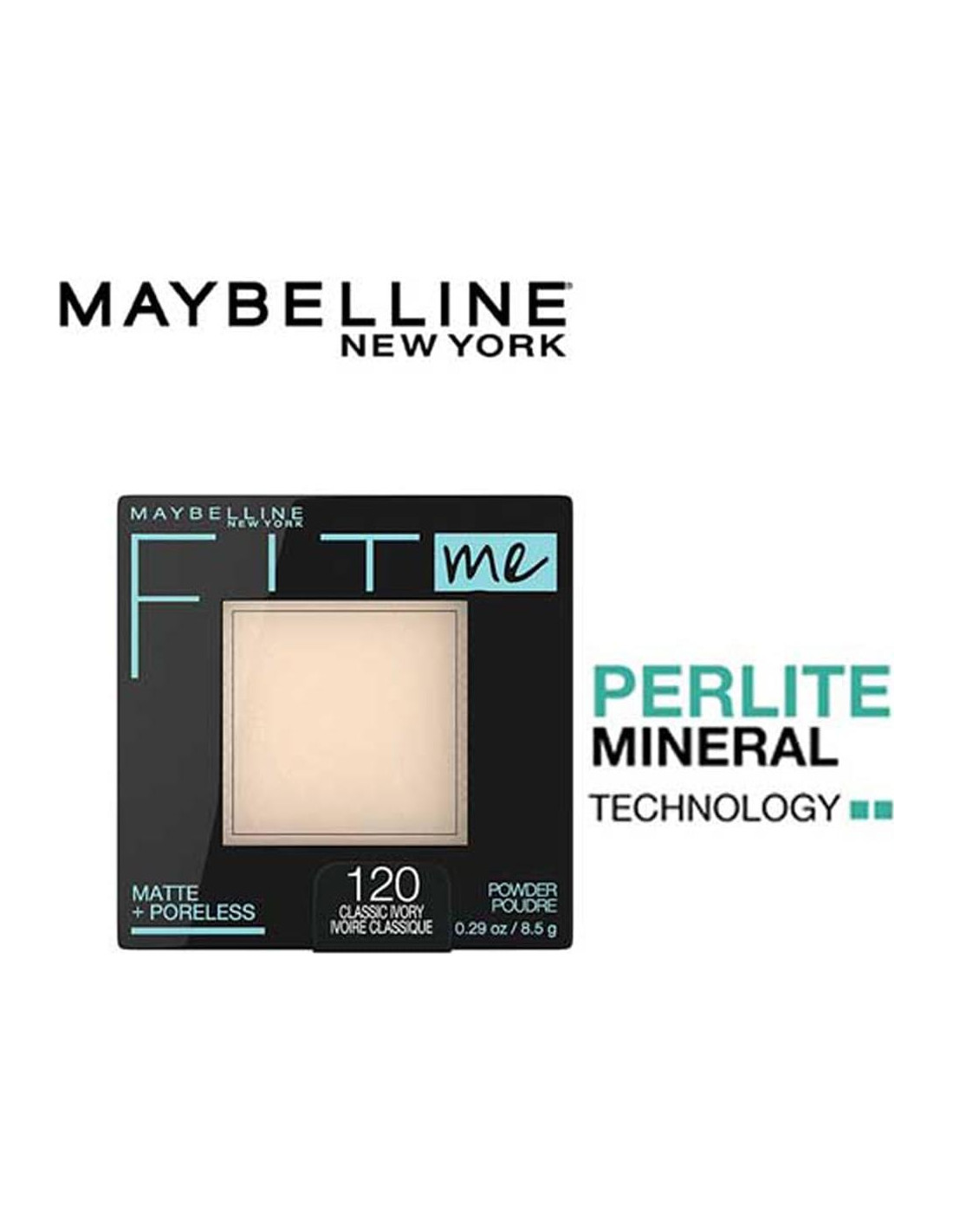 Maybelline Fit Me Mate + Sin Poros Maquillaje Líquido Sin Aceite, Marfil Clásico, 1 Cuenta (El embalaje puede variar) Maquillaje Maybelline Fit Me Mate + Sin Poros Maquillaje Líquido. Aplica la base sobre la piel y difumina con los dedos o un aplicador. La base número 1 de América * *Cálculo de L'Oréal basado en datos reportados por Nielsen a través de su Servicio Scantrack para la categoría de bases durante el período de 52 semanas que finalizó el 9 de febrero de 2019, para el mercado xAOC de EE. UU. según la jerarquía de productos personalizada de L'Oréal. La compañía Nielsen. Maybelline Fit Me Mate + Sin Poros Polvo Compacto & Polvo Fijador, Marfil Clásico, 1 Cuenta Este polvo de larga duración deja un acabado natural y sin poros con control de brillo duradero. La tecnología mineral de perlita absorbe el aceite para matificar la piel, mientras que los poros prácticamente desaparecen gracias a los micro-polvos difuminadores.