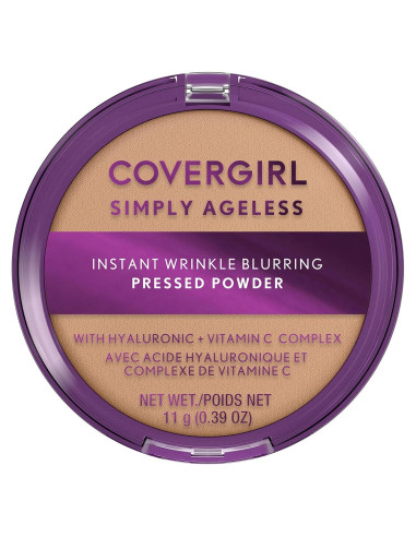 Reduce instantáneamente la apariencia de líneas finas y arrugas con el Polvo Compacto Difuminador de Arrugas Instantáneo Simply Ageless de COVERGIRL. Este polvo facial hidratante se aplica de manera cremosa y no se agrieta ni se descama para un acabado impecable. El polvo de maquillaje prensado está formulado con ácido hialurónico y vitamina C para refrescar el cutis y unificar el tono de la piel. Perfecto para retoques sobre la marcha, el polvo prensado mate hace que los poros sean menos visibles y se desliza sobre líneas finas y arrugas para ofrecer una piel de aspecto juvenil. Consejo profesional: ¡Usa este polvo prensado para fijar tu Base Simply Ageless!