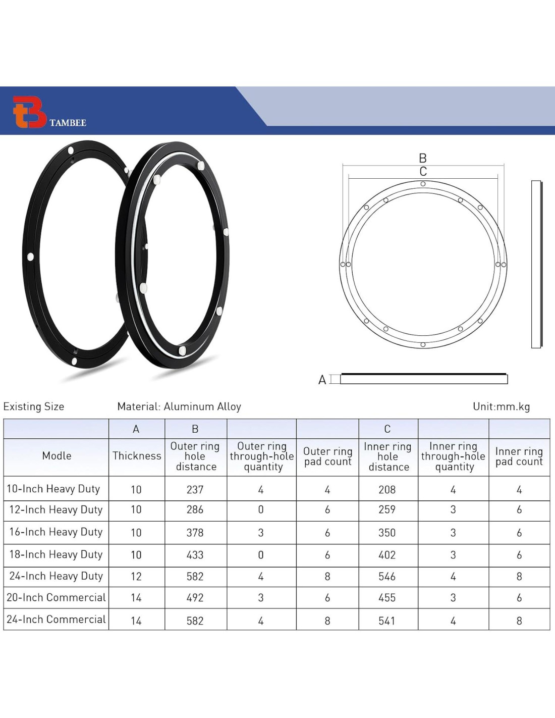 Nuestro nombre, TamBee, refleja nuestra filosofía: Como la precisión de un panal, nuestros productos están construidos con inteligencia y durabilidad en mente. Pero más que eso, estamos aquí para alimentar la creatividad, ya seas un entusiasta del DIY creando la casa de tus sueños o un constructor profesional empujando los límites del diseño. Si piensas que la Lazy Susan solo se puede usar para mesas de comedor, ¡te perderás estilos de vida más maravillosos! Nuestra introducción te mostrará cuán creativa es la vida. Hecho de material de aleación de aluminio de alta calidad, este hardware de lazy susan es robusto y duradero, capaz de soportar cargas pesadas y gira suavemente, lo que lo hace perfecto para una variedad de usos. 20 Pulgadas Comercial (Negro) 12 Pulgadas Pesado 16 Pulgadas Pesado (Negro) 10 Pulgadas Pesado 20 Pulgadas Comercial 18 Pulgadas Pesado 10 Pulgadas Pesado