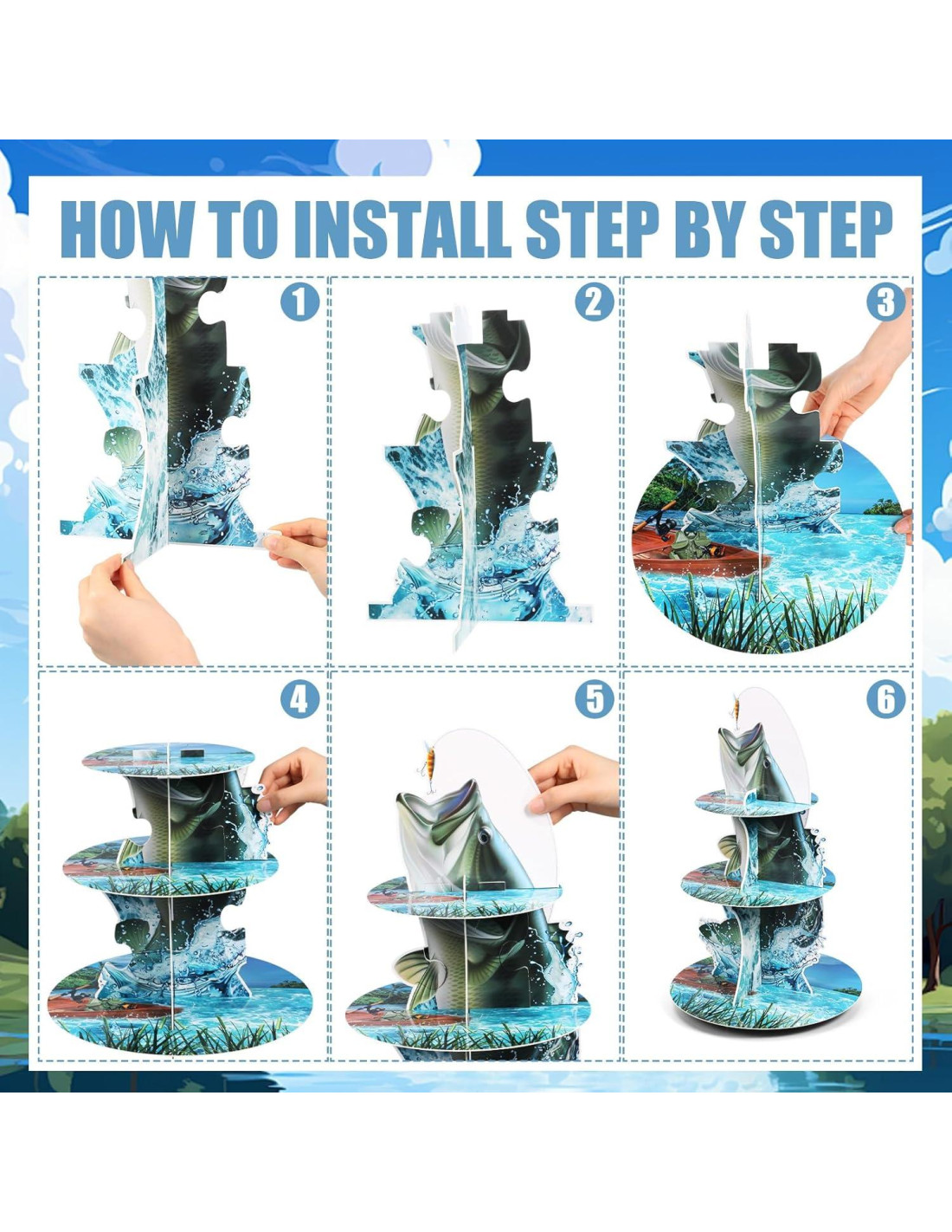 - Material de Calidad: las decoraciones de fiesta de la torre de cupcakes de pesca están hechas de cartón resistente de calidad con diseño de estructura en cruz, robusto y duradero para sostener una variedad de postres de fiesta, reutilizable, añade vitalidad a tu fiesta de cumpleaños de pesca