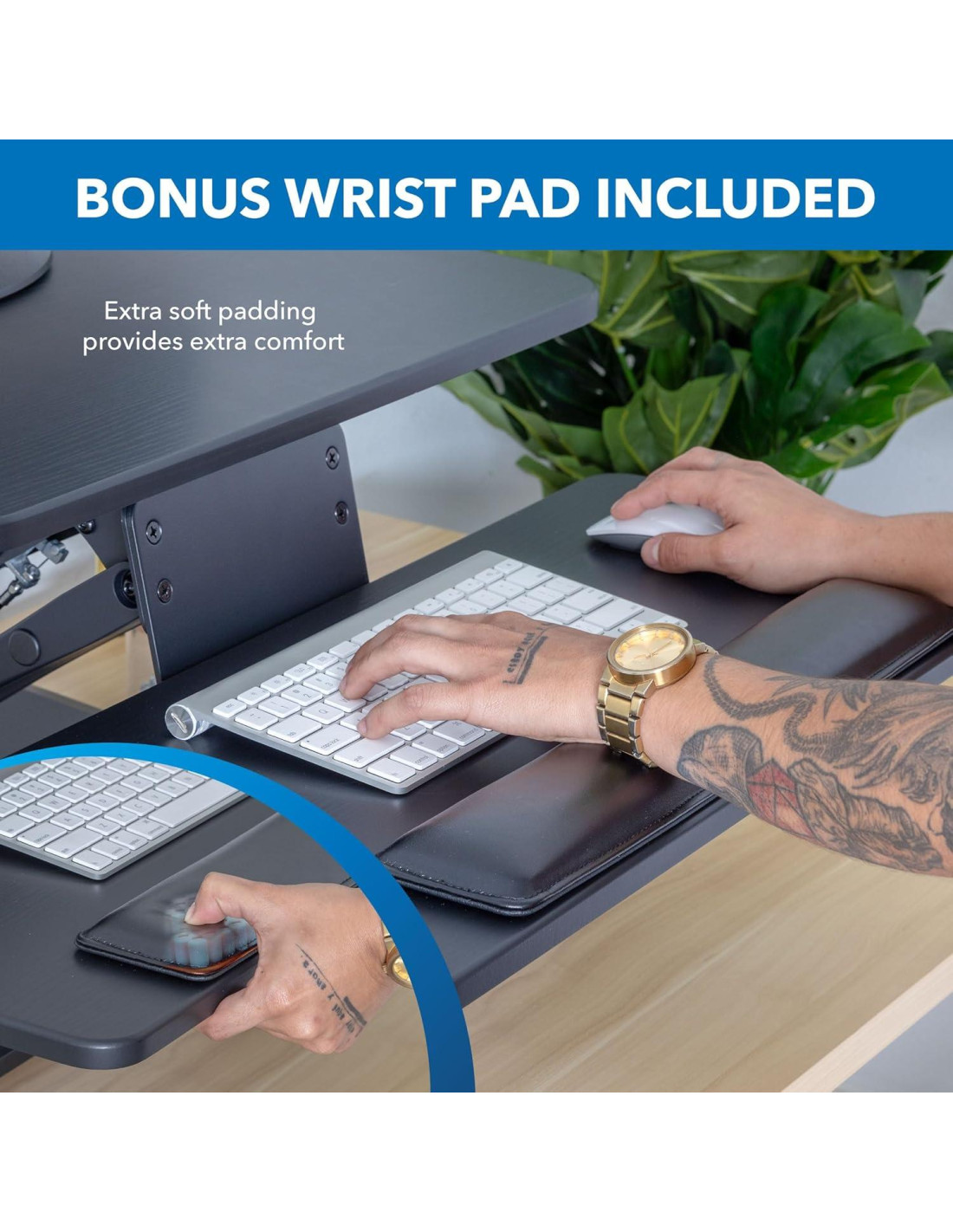 - Espacio de Trabajo Cómodo y Organizado: El elevador de escritorio de sentado a de pie incluye una gran bandeja para teclado de 67.74 cm x 30.00 cm diseñada para acomodar tanto el teclado como el ratón con facilidad, completa con un suave almohadilla de gel para muñeca para mayor comodidad ergonómica. La gestión de cables integrada mantiene tu espacio de trabajo ordenado y libre de desorden de cables.