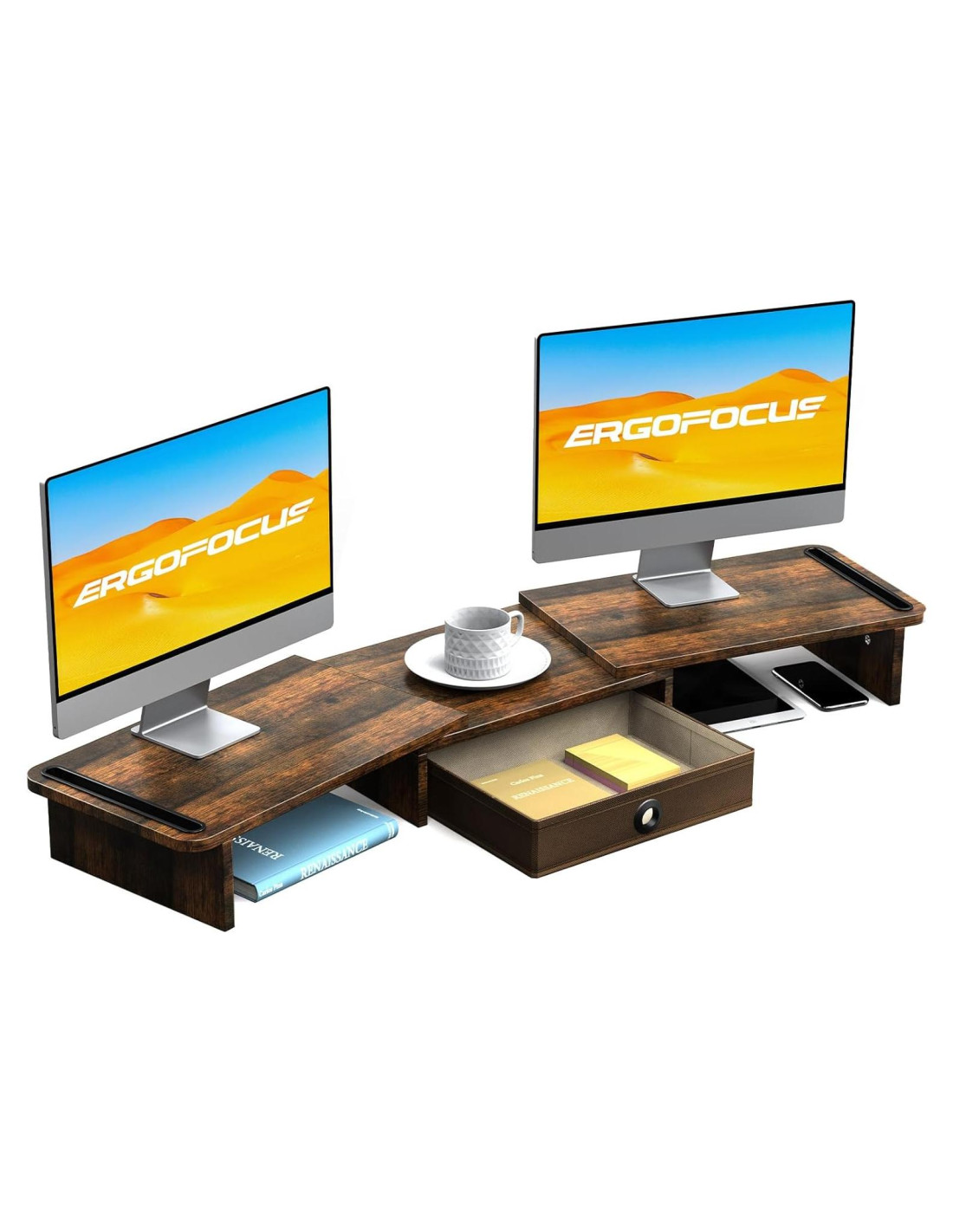 Nuestro soporte para monitor de computadora viene con un cajón para almacenar notas adhesivas, utensilios de escritura, archivos y cuadernos. También hay dos ranuras para bolígrafos a ambos lados del panel. Nuestro elevador de computadora es adecuado para escritorios, laptops, iMacs e impresoras. Si necesitas trabajar con múltiples computadoras al mismo tiempo, elige nuestro soporte para monitor. Puede acomodar de 2 a 3 monitores/laptops para satisfacer tus necesidades de oficina. Este soporte para monitor de escritorio ayuda a elevar tu monitor o laptop en 10 cm (3.94 pulgadas) para elevar la pantalla de tu monitor a una altura de visualización cómoda, reduciendo el riesgo de tensión en el cuello y los ojos. ¡Mantente cómodo y más saludable! Soporte para Monitor con Cajón Soporte para Doble Monitor Soporte para Triple Monitor Soporte para Triple Monitor Soporte para Monitor con Cajón Elevador de Monitor Acrílico Elevador de Monitor Acrílico Personaliza tu espacio de escritorio con el elevador de monitor ErgoFocus