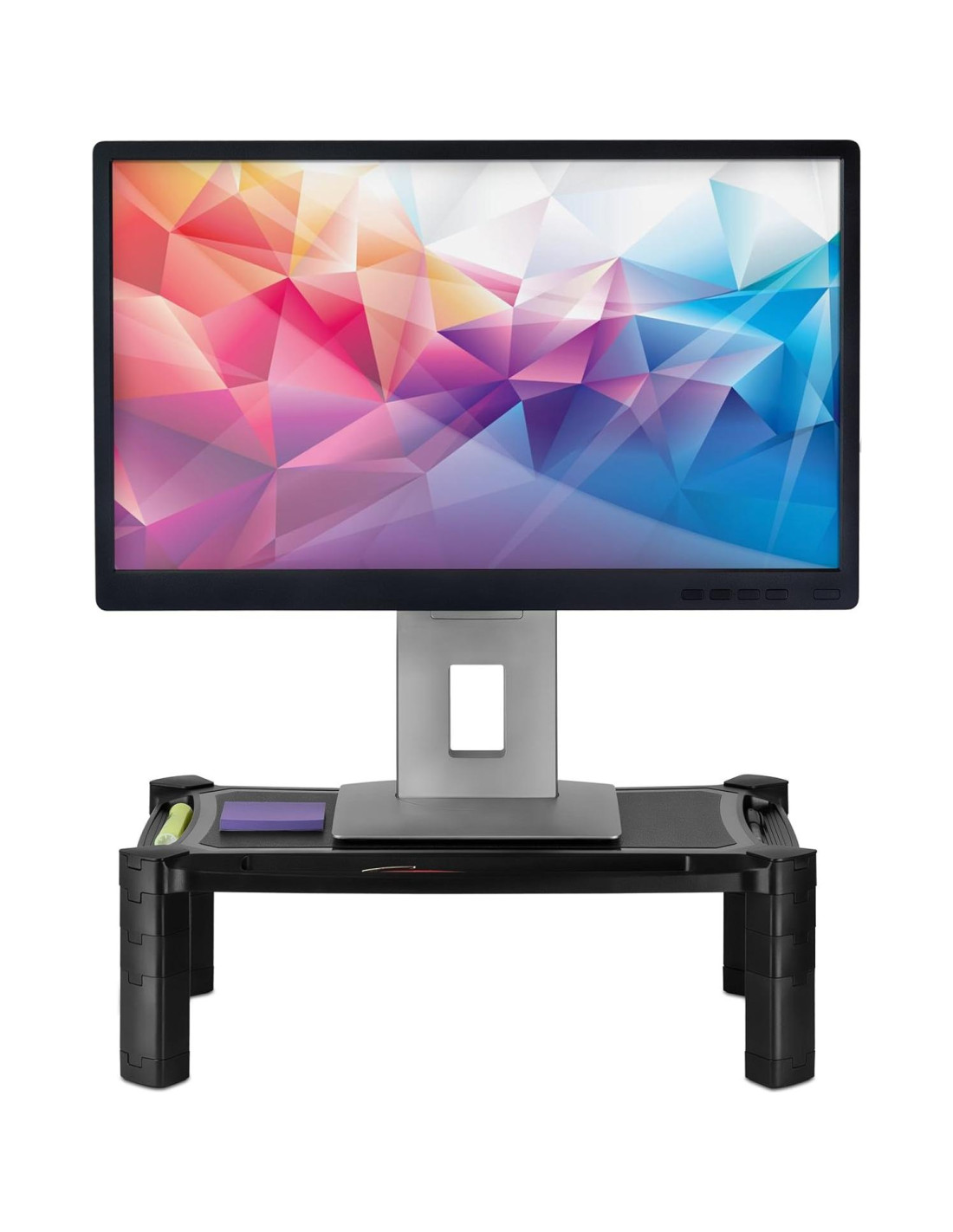 - Soporte ergonómico para monitor - Eleva tu monitor a la altura de los ojos para aumentar la comodidad de visualización y prevenir el dolor de espalda y cuello.