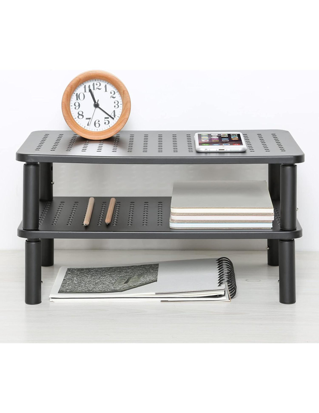 - Plataforma Ventilada Aumenta el Flujo de Aire Previene el Sobrecalentamiento del soporte de monitor: Gran plataforma resistente con agujeros ventilados, este soporte evitará el sobrecalentamiento y mantendrá el dispositivo funcionando fresco. Nuestro elevador de monitor ajustable está hecho de acero recubierto en polvo con una plataforma de agujeros de malla perforada que mejora el flujo de aire hacia tu dispositivo. Los agujeros también ayudan a prevenir el temido sobrecalentamiento y mantienen tu computadora fresca y en condiciones óptimas de trabajo.
