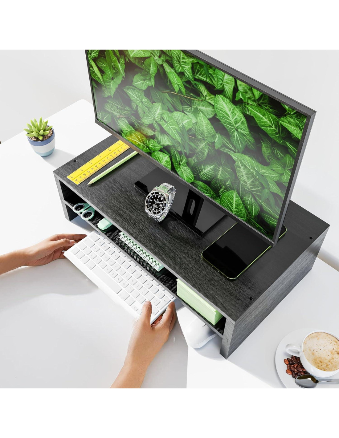 - ALMACENAMIENTO QUE AHORRA ESPACIO: Proporciona suficiente área para almacenar laptops, ratones inalámbricos y necesidades diarias para mantener tu escritorio ordenado. Este elevador de monitor es ideal para tu oficina, sala de estar, dormitorio y estudio.
