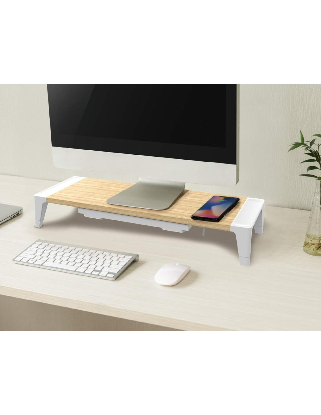 - Nombre del modelo: Soporte de Monitor de Madera Bostitch, Base de Carga Inalámbrica, Cajón para Almacenamiento, Elevador de Altura Ajustable Incluye Pies de Goma Antideslizantes Removibles - Grano de Madera y Blanco