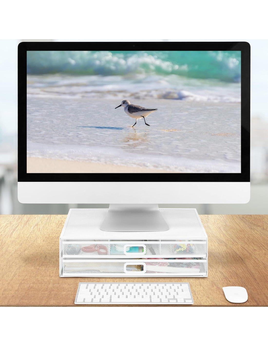 - MULTIFUNCIONAL CON AMPLIO ALMACENAMIENTO: Equipado con dos cajones deslizables, este soporte es perfecto para organizar elementos esenciales de escritorio como teclados, ratones y suministros de oficina, lo que lo convierte en un excelente soporte de escritorio para computadora y organizador de escritorio con cajones.