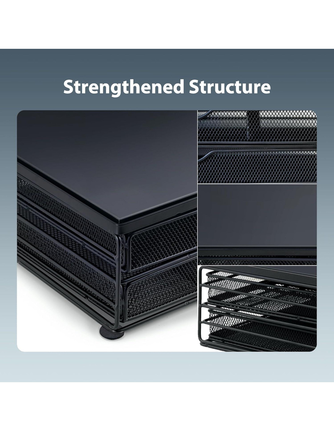 - Proporciona Espacio Extra para Ti: El soporte para monitor tiene 2 cajones removibles, un cajón grande puede acomodar fácilmente carpetas, laptop de 35.56cm, papel A4 o blocs de notas, y un cajón tiene divisores para artículos de oficina más pequeños. ¡Un soporte para monitor también puede ser un medio útil de almacenamiento para ayudar a desordenar tu escritorio!
