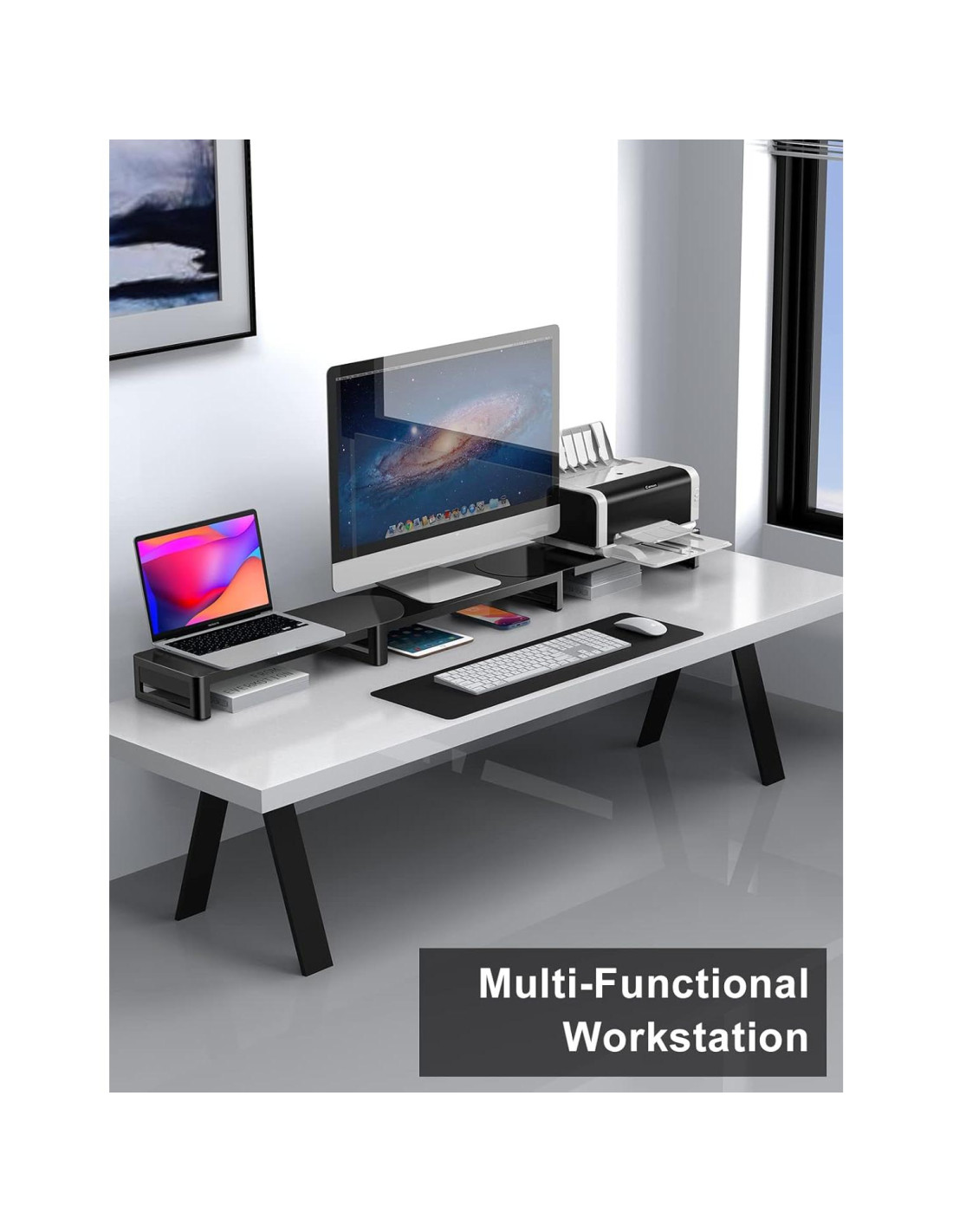 - Robusto y duradero: cuando necesitas que dos computadoras trabajen juntas, ¡esta es una buena opción! Tamaño del producto: 98.8 x 20 x 9 cm (largo * ancho * alto); capacidad de carga: 30 kg. El soporte para dos monitores está hecho de acero galvanizado de alta calidad, que puede acomodar dos soportes de monitor de 27" y otros equipos, como impresoras, computadoras y laptops.