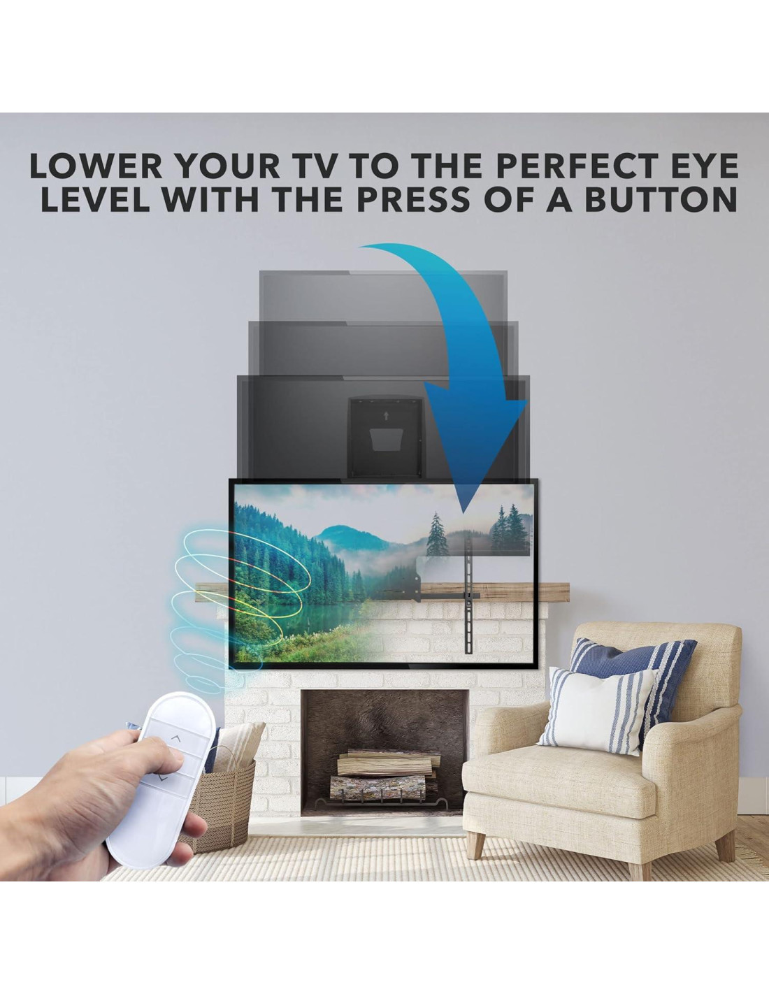 - SOPORTE DE TV MOTORIZADO CONTROLADO POR MANDO A DISTANCIA: Soporte de TV motorizado ajustable en altura con control remoto diseñado específicamente para uso en repisas de chimenea. Ajuste de altura eléctrica de 24.8 pulgadas (62,87 cm) permite que su TV se baje sin esfuerzo a una altura de visualización más cómoda con solo presionar un botón cuando es hora de ver su programa favorito