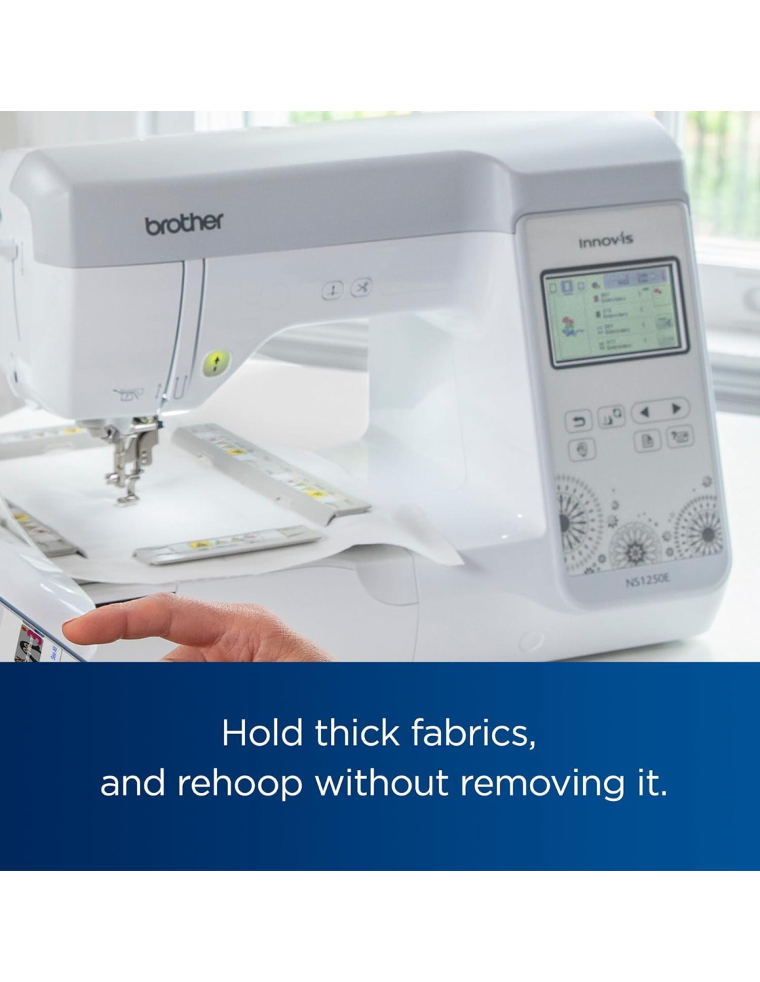 - Compatible con estas máquinas de bordado y combinación de bordado/costura de Brother: NS1250E, NS2850D, PE800, PE900, SE1900, SE1950, SE2000, SE2100DI