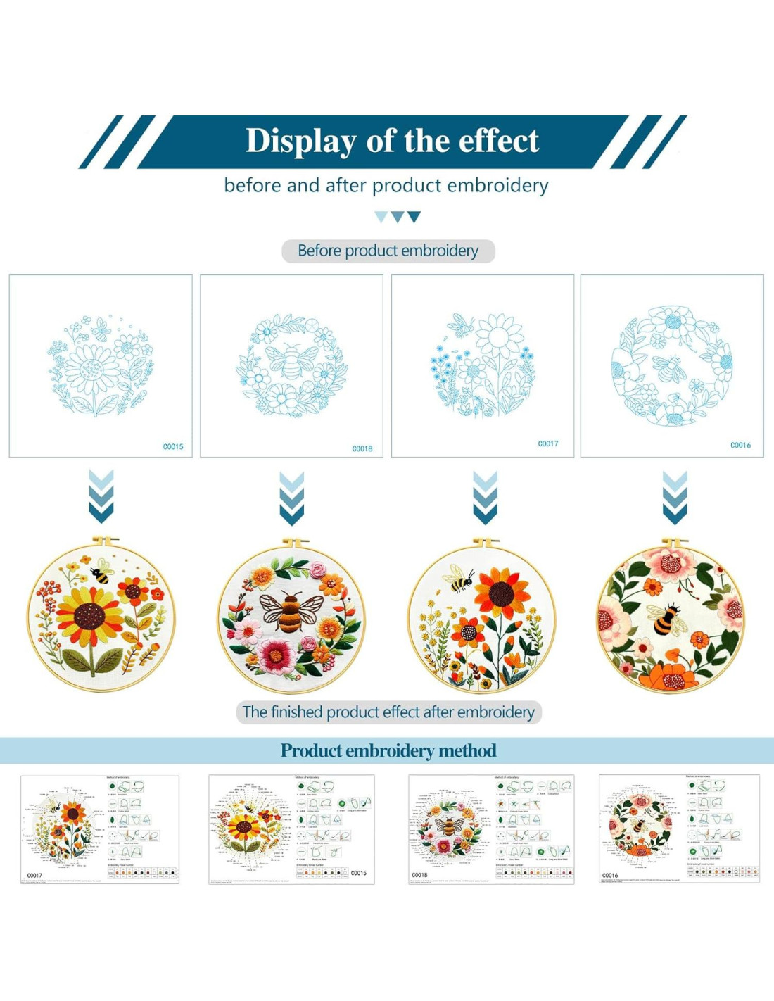 Los materiales incluyen: Muestras de alta definición del detalle del producto destacan la meticulosa artesanía y el diseño reflexivo en cada puntada. El kit incluye hilos de color junto con patrones estampados, aro de bordado, agujas y una gama completa de accesorios requeridos para el proyecto. Nota: Consejo Pro: Evita el contacto con el agua durante la costura - ¡los patrones auto-borrables se mantienen nítidos solo cuando están secos!