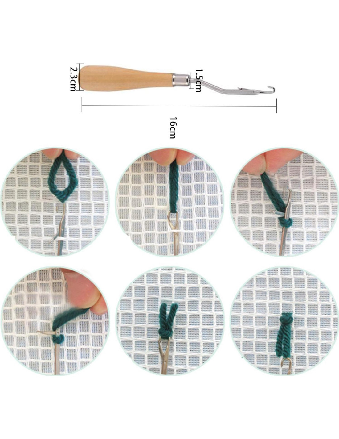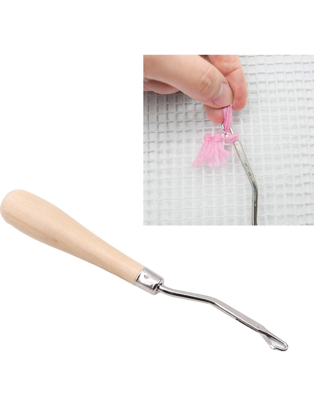 - Mango de madera y aguja de gancho de metal, práctico y fácil de usar, bueno para hacer alfombras de fabricación manual, no recomendado para productos delgados como hilo, mantener alejado de niños y bebés