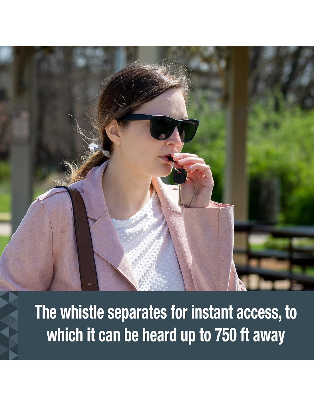 - LLAMADAS DE AYUDA: El llavero en este gel de aerosol de pimienta se separa para revelar un silbato fuerte que se puede escuchar hasta 750 pies de distancia, creando un ruido que ayuda a disuadir a los atacantes y atraer la atención de otros. Se puede adjuntar a llaves para una protección conveniente y fácil de llevar.