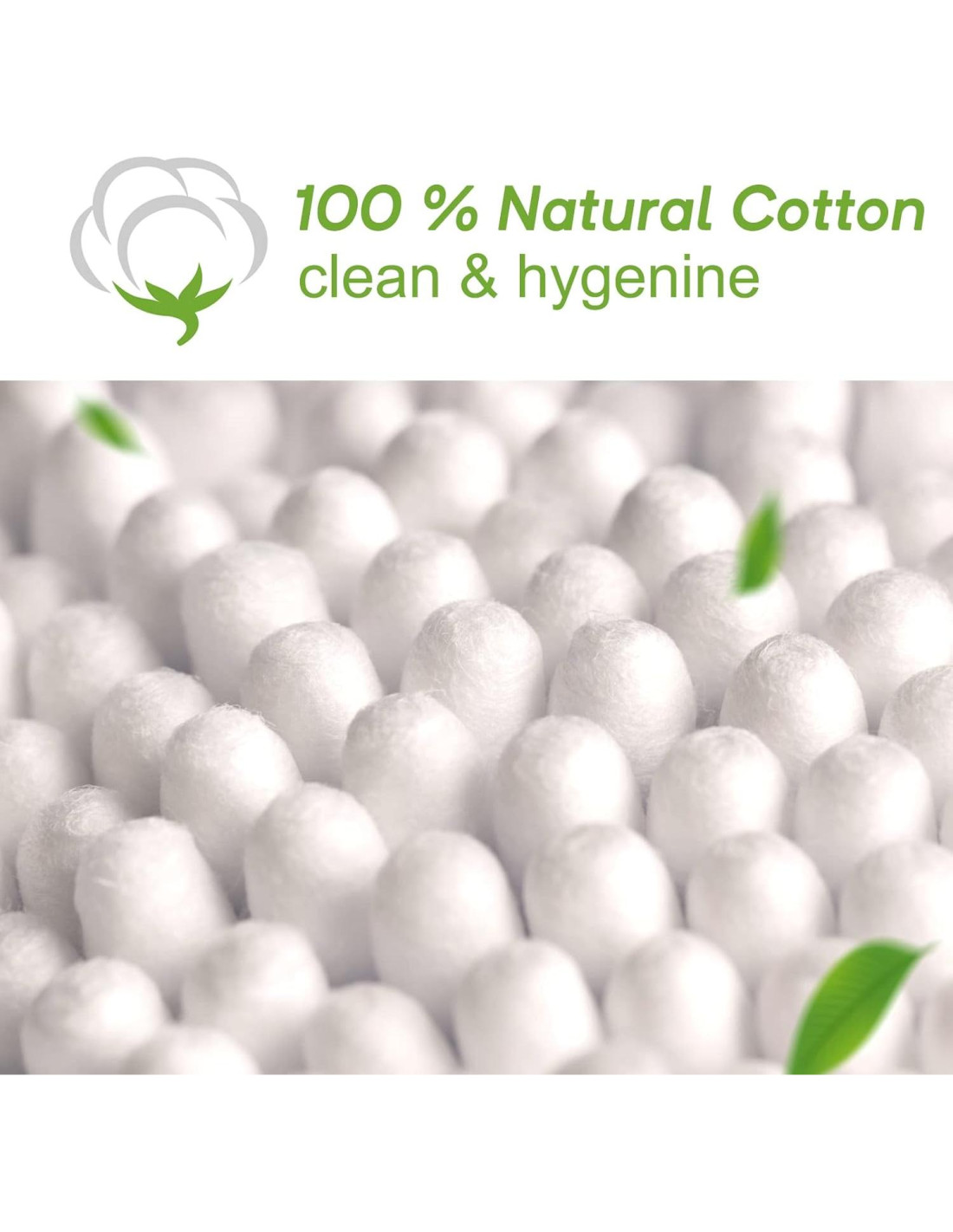 - Bastones de Algodón Natural: Elaborados con 100% algodón puro; suaves, absorbentes y seguros para todo tipo de piel; ideales para limpieza de oídos, aplicación de maquillaje y tareas delicadas