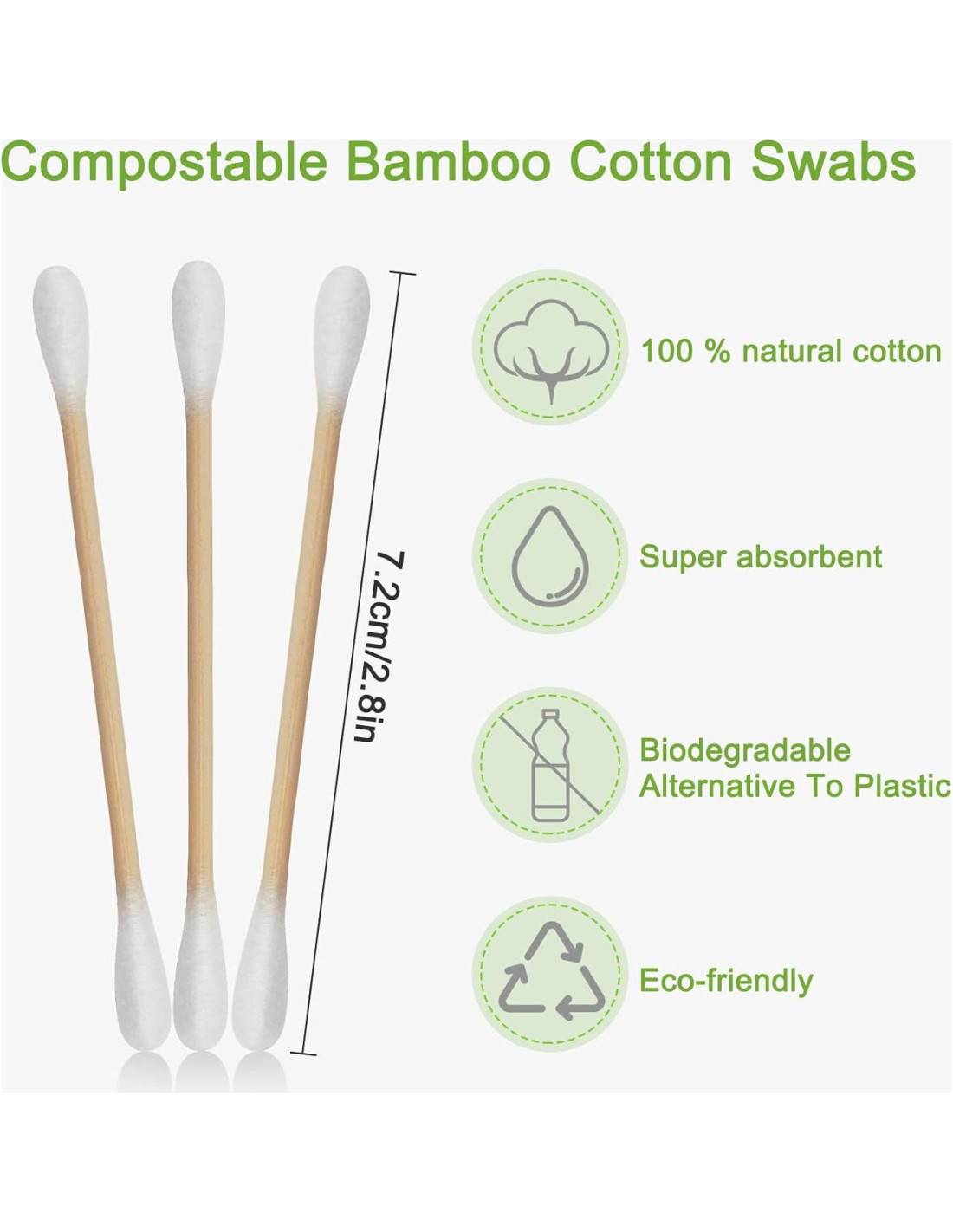 - Bastones de Algodón de Bambú Duraderos: Con palitos de bambú resistentes; ofrecen mejor fuerza y fiabilidad que los palitos de madera regulares; diseñados para resistir roturas durante el uso