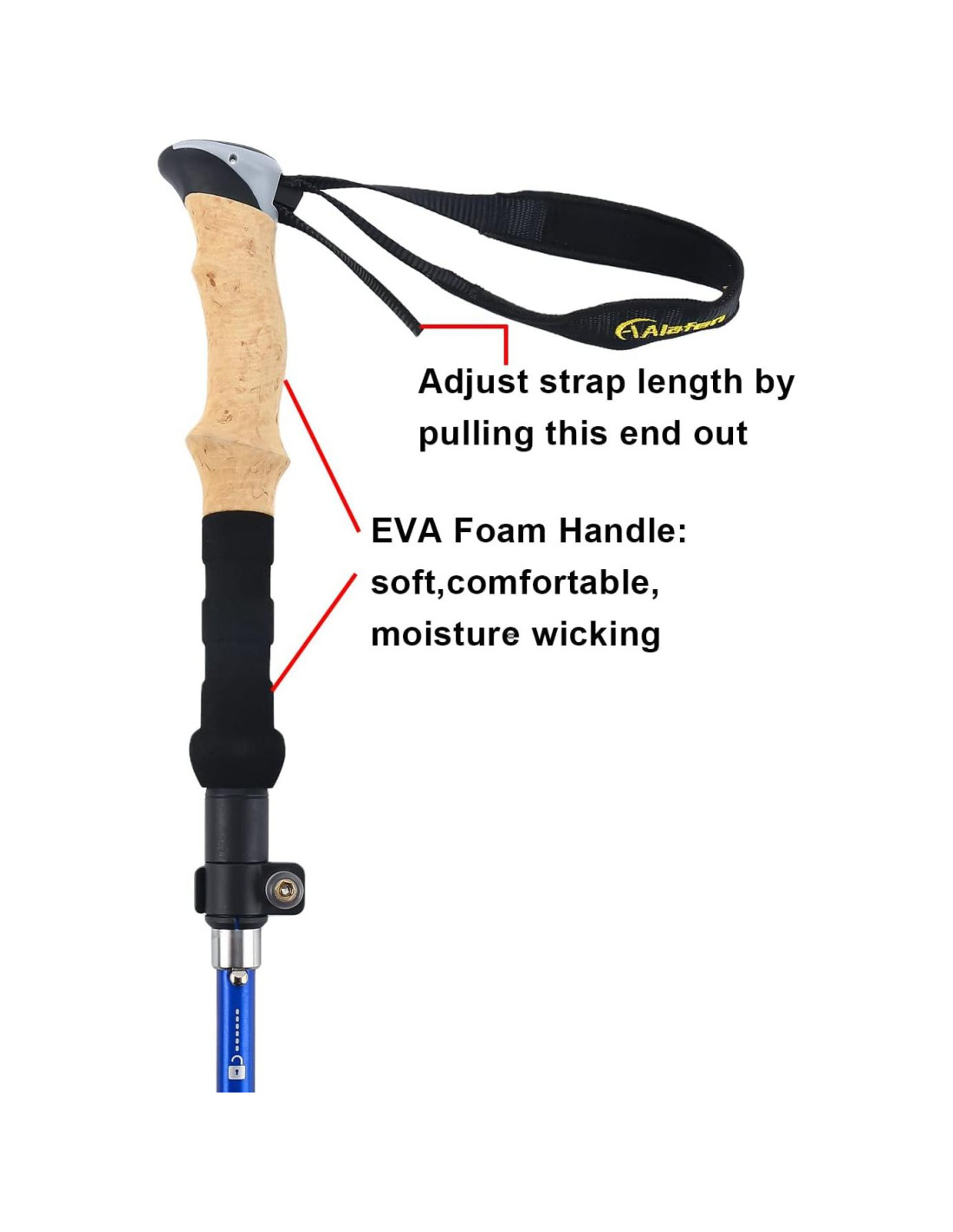 - SÚPER CÓMODO: Mango de espuma EVA con correa de muñeca, que absorbe el sudor, diseño de ranura antideslizante, y súper cómodo para un uso prolongado. Longitud estándar internacional de 49" (124,46 cm) de largo, y 14.1" (35,81 cm) cuando está plegado, encajando perfectamente en su mochila.