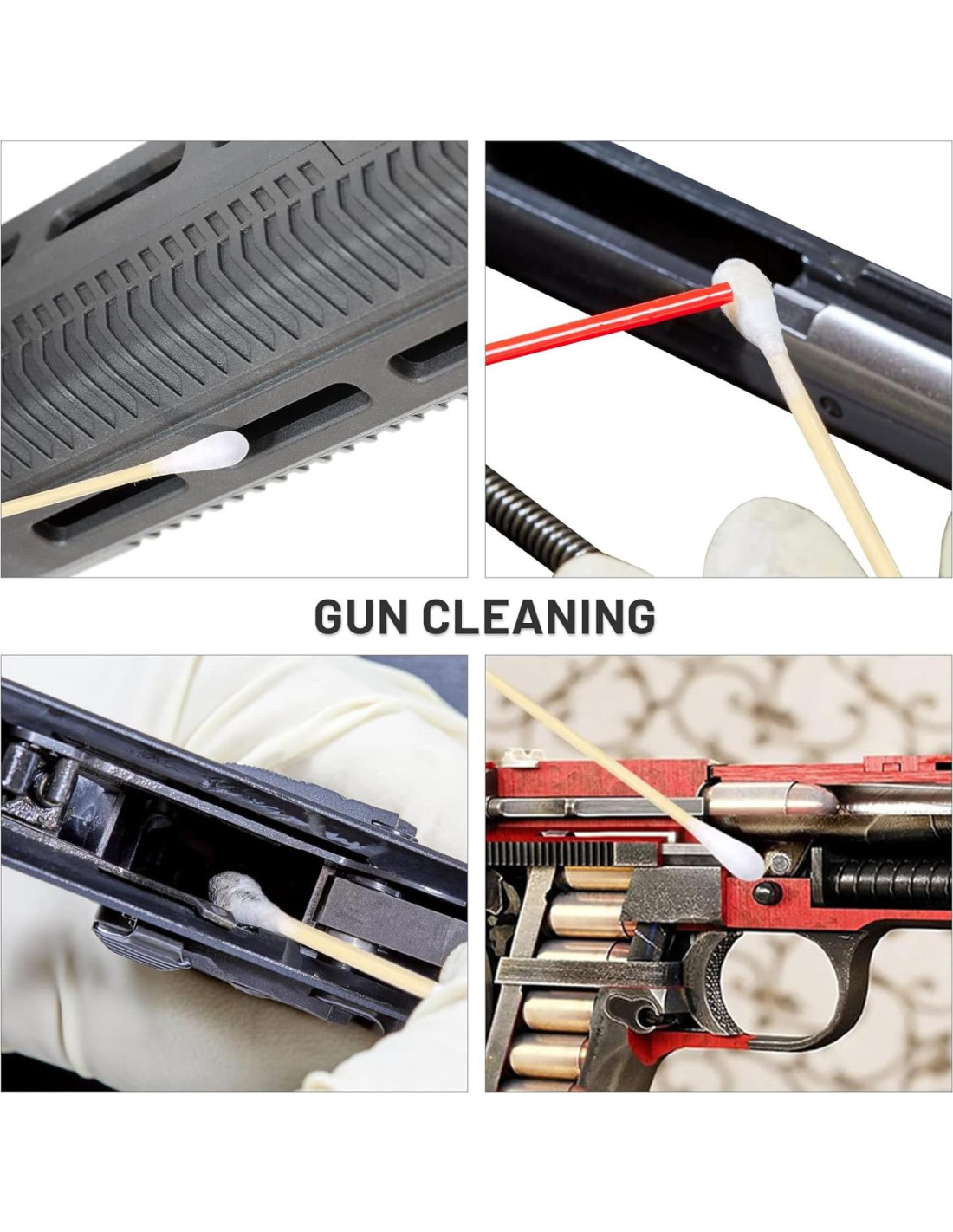 - PAQUETE EN CAJA: Incluye 500 PCS bastones de algodón, empaquetados en un estuche de almacenamiento reutilizable. Fácil de almacenar y usar, mantiene los bastones de limpieza de armas bien organizados, también se puede reutilizar como organizador de artículos más pequeños