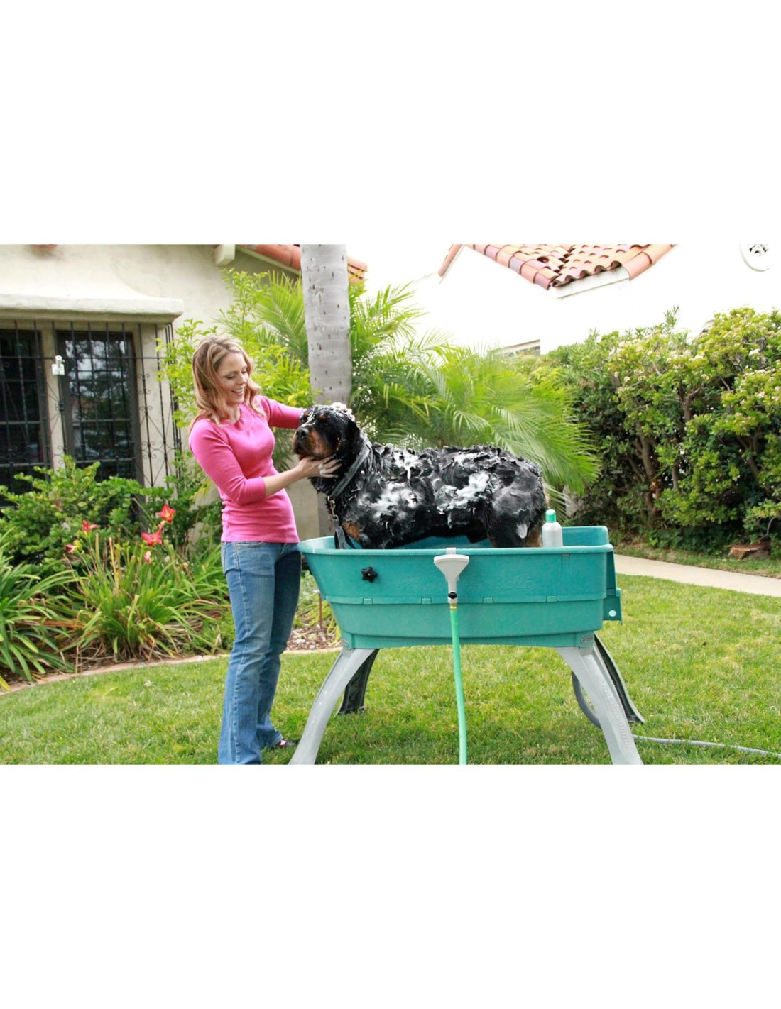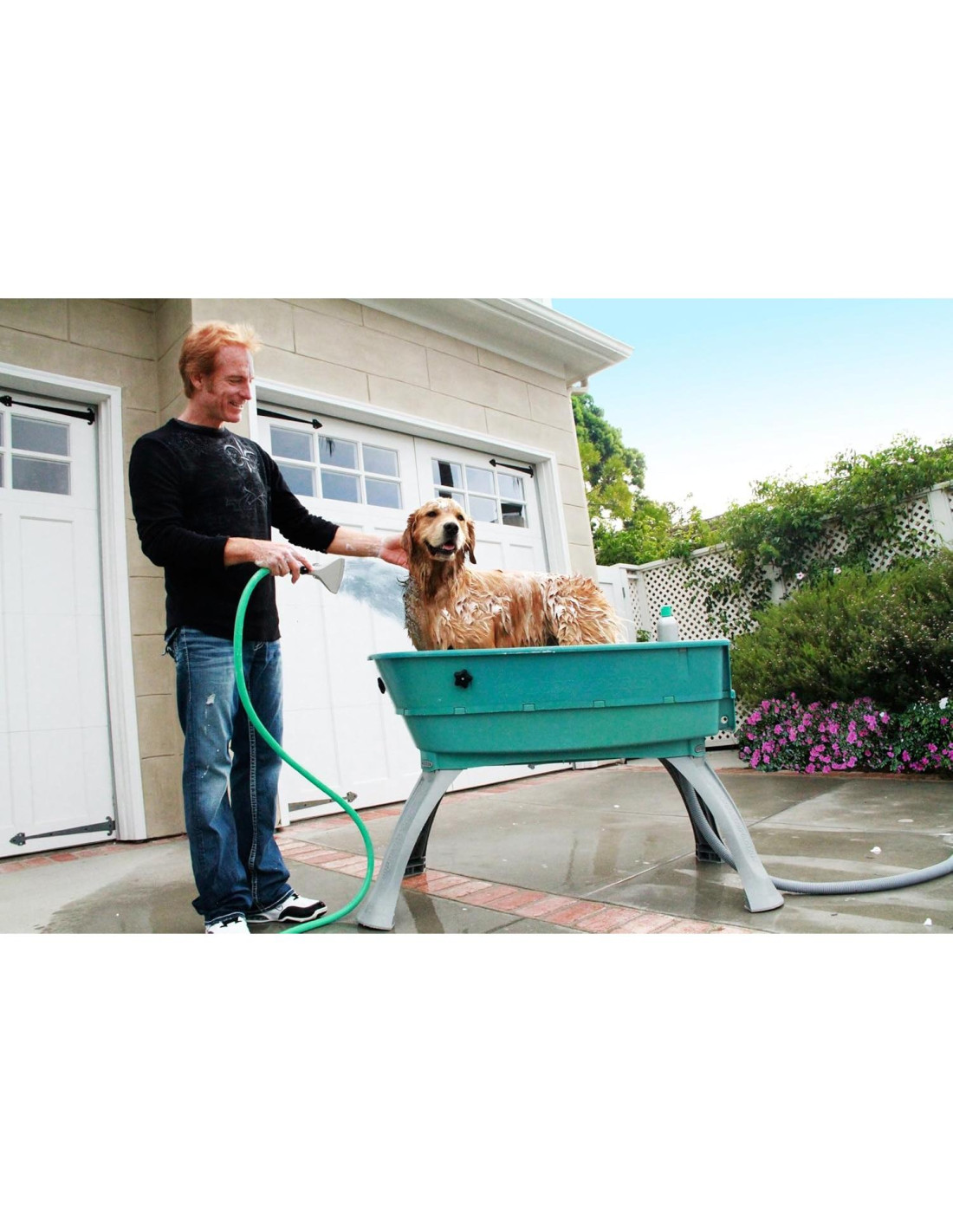 Los productos Booster Bath eliminan la mayoría de los problemas con el baño de mascotas en casa: resbalones y deslizamientos, perseguir la botella de champú (y a la mascota), dolores de espalda por agacharse, levantar a la mascota dentro y fuera de la bañera y limpiezas desordenadas del baño. ¡Los problemas que solíamos tener con el baño de mascotas han terminado! Ganador del Premio de Elección del Minorista 2019 Presentado por la Asociación de Hardware Minorista de América del Norte 2019 Los problemas que solíamos tener con el baño de mascotas han terminado; reemplazados por elevación, contención, drenaje y acceso de 360 a su mascota. El Booster Bath es simplemente la bañera para perros más elegante, conveniente y funcional disponible para uso doméstico y comercial ligero. La bañera Booster Bath Grande está disponible en Verde Azulado, Rojo y Lila.