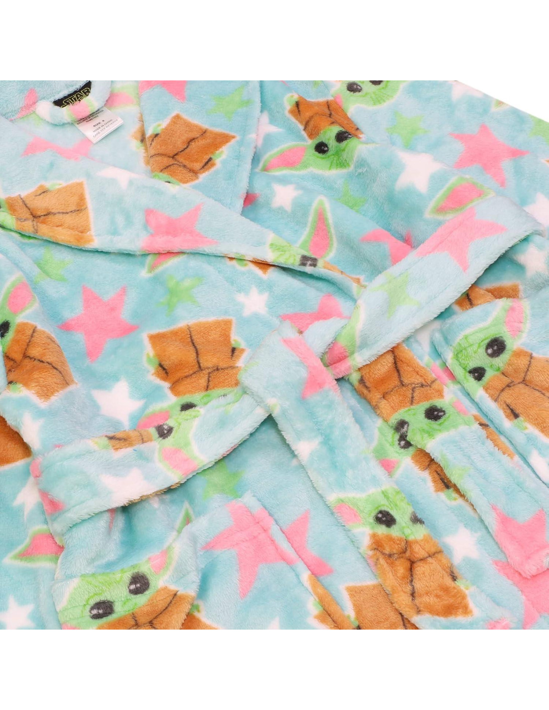 Envía a tu pequeño a tomar un baño o a soñar con proteger a los Jedi, entrenar a jóvenes Padawans, o luchar contra el Imperio Galáctico en una galaxia muy, muy lejana con la Bata de Niños de "Star Wars". A tu pequeño le encantará usar esta cómoda bata de baño de felpa que presenta gráficos de su amigo favorito de "Star Wars". Perfecta para usar por la noche, como un disfraz de "Star Wars", o para un día perezoso de juego, esta bata para niños se convertirá en el nuevo accesorio favorito de pijama de tu hijo. Disponible en tallas 2T-5T y 4-10, esta bata es supersuave y excelente para usar en todas las estaciones. Esta bata presenta colores brillantes y ricos y divertidos gráficos del personaje Yoda. Las mangas largas son holgadas y facilitan vestir a tu pequeño, y el cinturón de la bata se ata fácilmente en la parte delantera y se ajusta para el ajuste correcto. Hecha de 100% poliéster, esta bata mantendrá a tu pequeño niño cálido y cómodo después de un buen baño. Un lavado en ciclo suave y un secado a baja temperatura mantendrán esta bata luciendo genial. Este producto de "Star Wars" con licencia oficial de Lucas está hecho con materiales de alta calidad, pensando en la seguridad y la comodidad. Para asegurar la máxima comodidad y seguridad, elige la talla correcta para tu hijo para evitar ropa que sea demasiado larga o demasiado holgada. Esta bata se fabrica de acuerdo con todos los estándares de seguridad de la ropa y es resistente a las llamas. Deja que tu hijo se ponga esta divertida bata y viva sus aventuras cuando se vayan a la cama, ¡y que la Fuerza los acompañe!