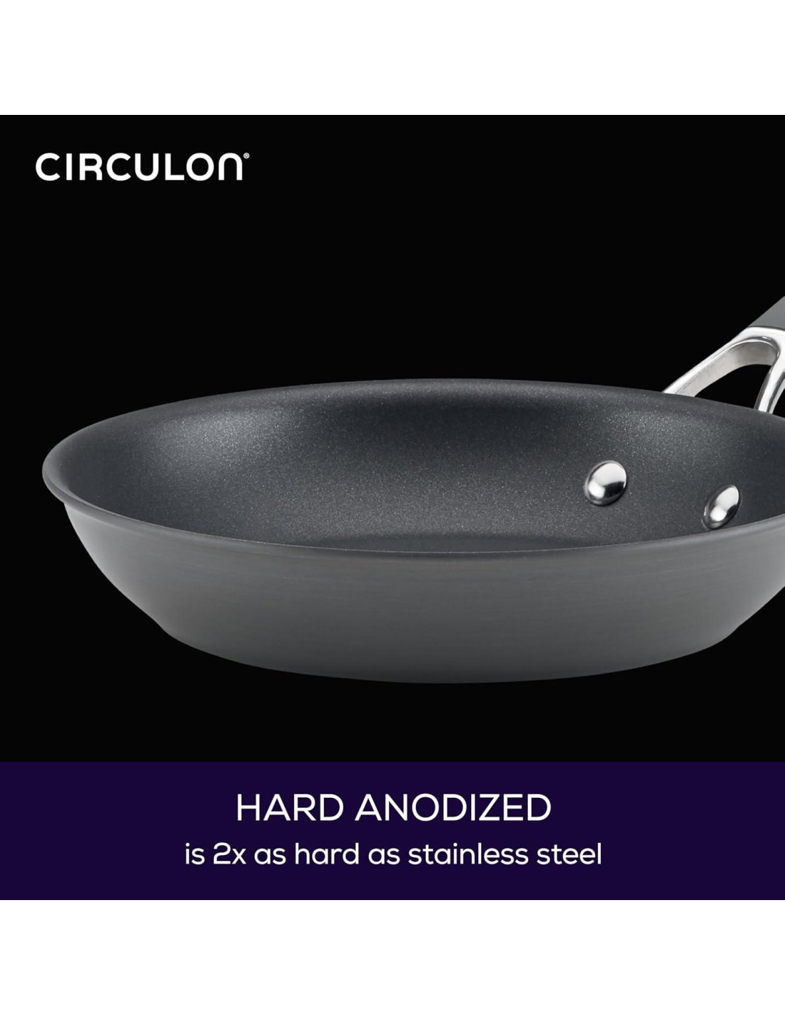 Energiza la cocina para un rendimiento de cocción y la conveniencia de ser apto para lavavajillas utilizando este versátil y eficiente Juego de Ollas y Sartenes Circulon Radiance Anodizado Duro Antiadherente de 10 Piezas. Diseñado con tecnología antideslizante superior y conveniencia apta para lavavajillas que ahorra tiempo y energía, estas ollas y sartenes de aluminio anodizado duro de grueso calibre ofrecen un calentamiento equilibrado para cada técnica de cocción, desde un rápido almuerzo de fin de semana para los niños hasta un guiso suculento cocido a fuego lento en una sola olla. Los mangos de las ollas y sartenes, robustos y con doble remache, proporcionan un agarre seguro, y las tapas de vidrio templado sellan el calor y el sabor mientras observas cómo se cocinan los alimentos. Las ollas y sartenes cuentan con el Sistema Antiadherente TOTAL de círculos elevados y un antiadherente premium para una liberación natural de alimentos y una limpieza fácil que dura 10 veces más que los antiadherentes normales. Desde las cacerolas hasta las sartenes, desde el salteado hasta la olla de caldo, cada pieza de utensilio de cocina ofrece una liberación de alimentos sin esfuerzo y resistencia a rayones, manchas y astillado. Lo mejor de todo, los utensilios de cocina Radiance son aptos para lavavajillas para la máxima conveniencia en la limpieza. Apto para horno hasta 400F (204,44C) y compatible con todas las estufas excepto inducción.