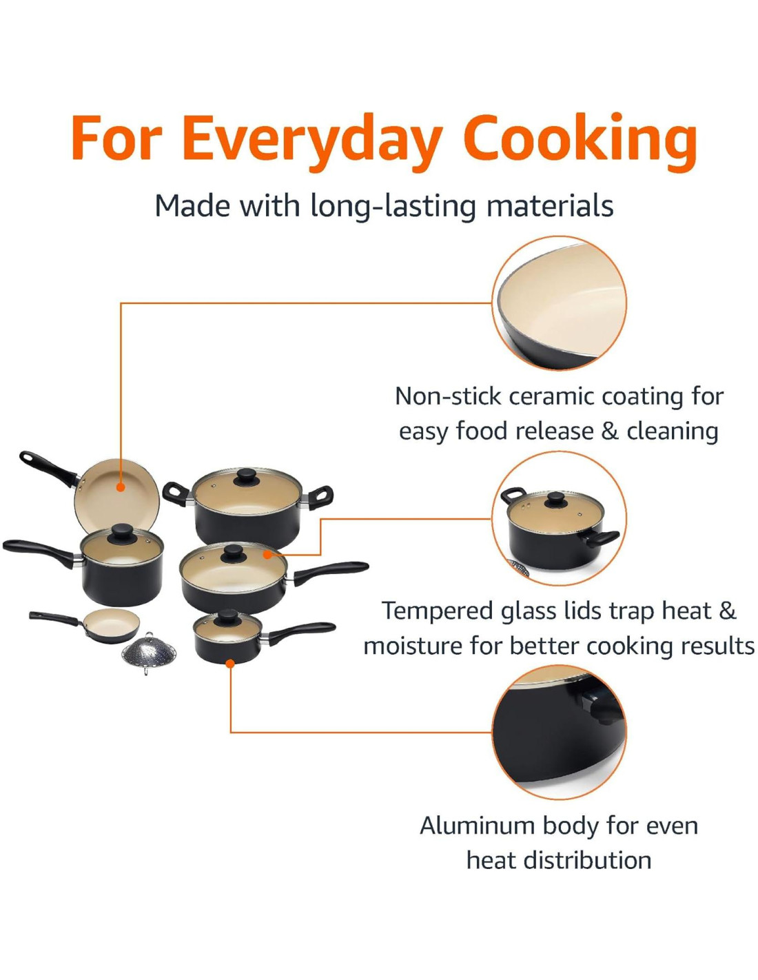 - Juego de utensilios de cocina de 11 piezas con ollas y sartenes en una variedad de tamaños populares, ideal para cocinar a diario
