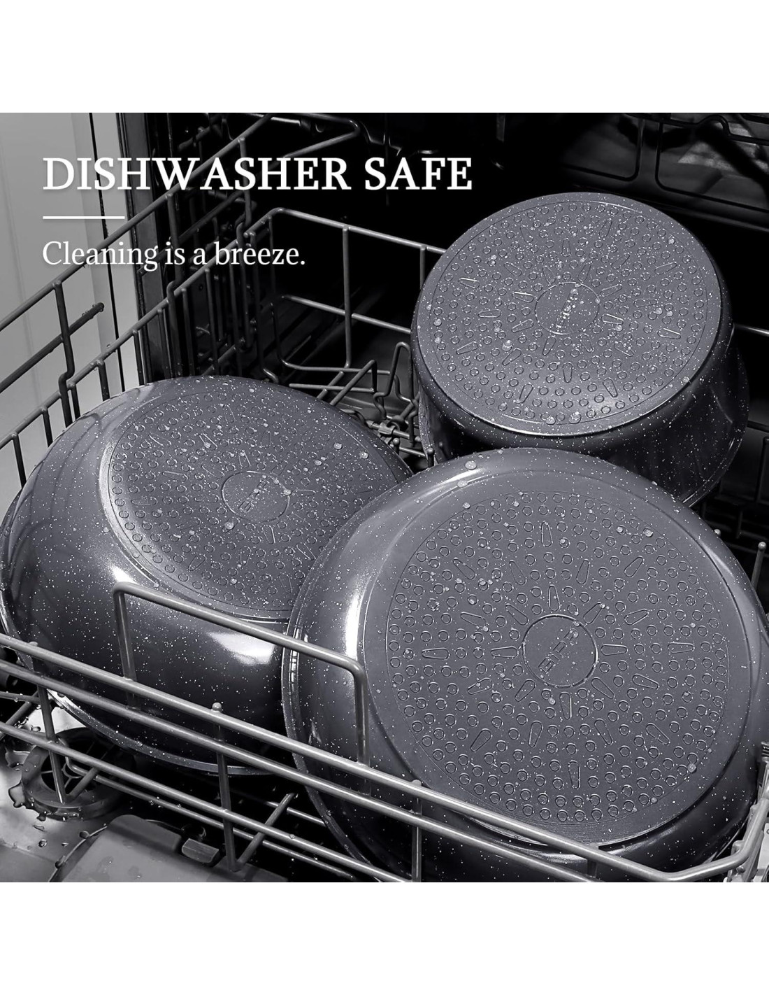 - Recubrimiento de Cerámica Saludable - Hecho con recubrimiento cerámico antiadherente 100% no tóxico, libre de PFOA, PFAS, PTFE, plomo y cadmio. Disfrute de una cocina más saludable con el juego de ollas y sartenes de cerámica.