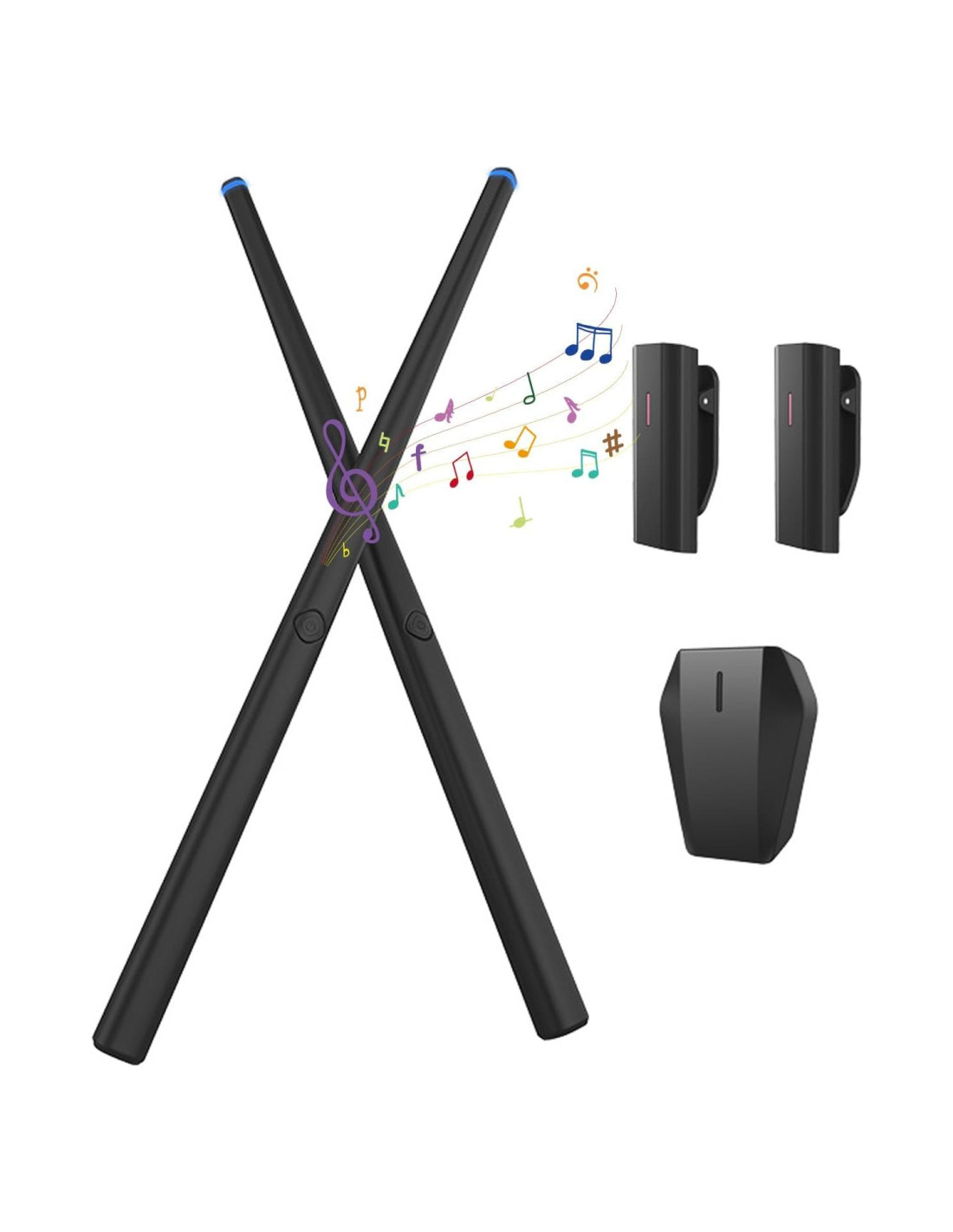 - Fácil de Usar: No se requiere aplicación, solo asegúrate de que la consola de los palos de batería esté conectada a un dispositivo de salida de sonido (como altavoces y auriculares). El dispositivo de captura de movimiento captura el movimiento exacto de los palos de batería y produce el sonido correspondiente.
