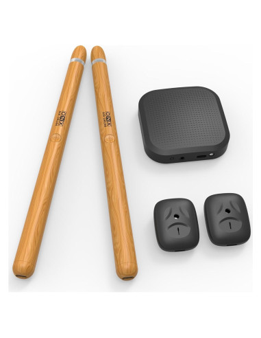 Los bastones de batería de aire virtuales son un instrumento musical que te permite tocar el set de batería en cualquier momento y lugar de manera silenciosa y portátil mediante la batería de aire. Solo necesitas un altavoz o auriculares para hacer sonido. Creado para resolver los problemas de tamaño y ruido que enfrentan todos los bateristas. El set de batería de aire portátil es una solución versátil para el hogar o en movimiento. Y es tan expresivo como las baterías electrónicas de alta gama. Hay un giroscopio electrónico en cada bastón de batería eléctrica y pedal que puede reconocer el movimiento y la posición. Y lo hace lo suficientemente rápido como para que no sientas ningún retraso mientras tocas. Sabemos que es una afirmación audaz decir que los bastones de batería digitales tocan igual que un set de batería. Nunca será posible que las baterías digitales se sientan exactamente como un set acústico. Pero lo decimos porque la disposición y la música que puedes tocar son las mismas.