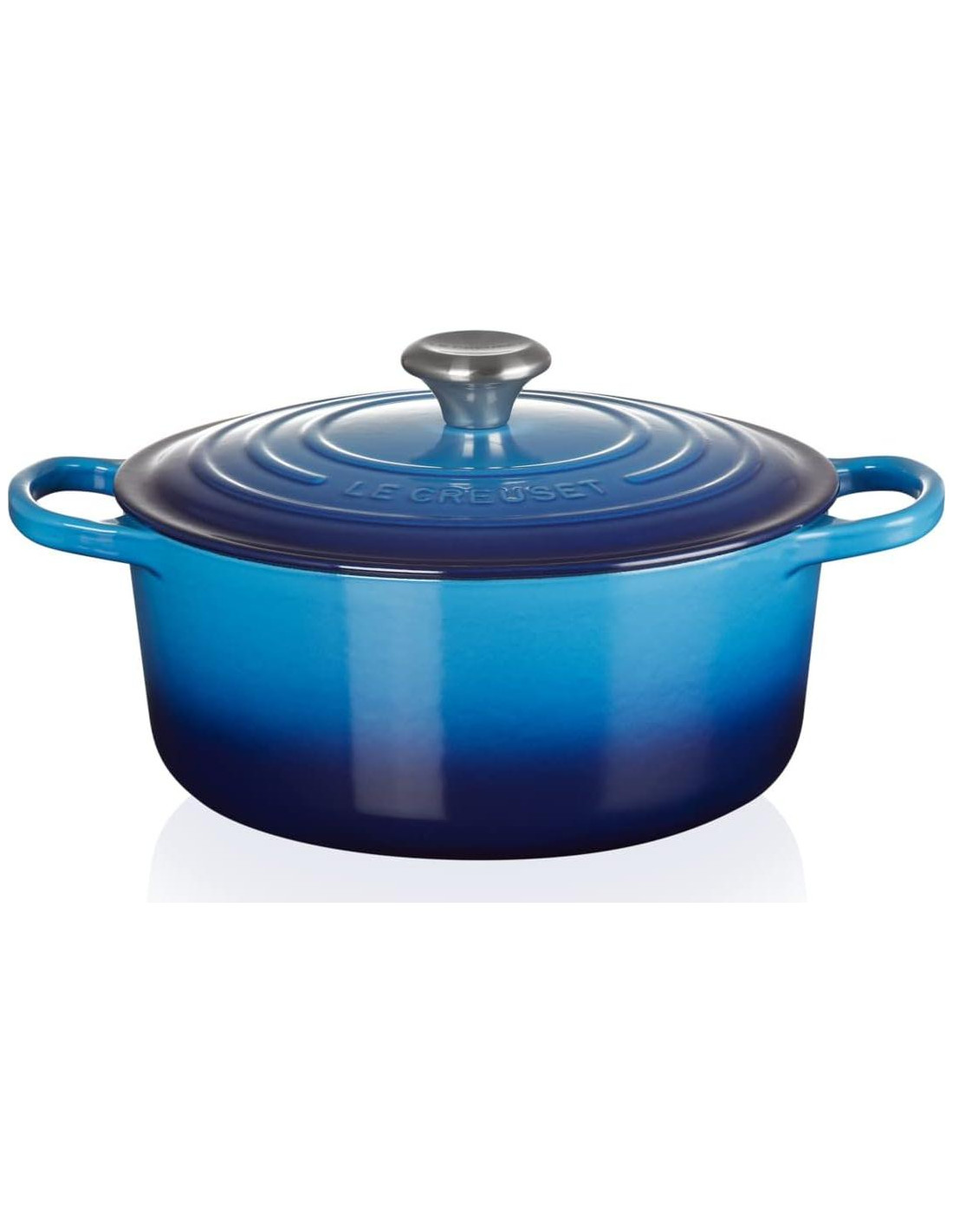 Cacerola redonda de hierro fundido esmaltado, Tapa ajustada, Cocina sin complicaciones en una sola olla, Sirve hasta 2 personas, o cacerola perfecta como guarnición, Hecho en Francia, Interior esmaltado de fácil liberación de alimentos, Para hervir rápidamente o cocinar a fuego lento a temperatura media-baja, Calienta de manera uniforme con retención de calor duradera, Uso versátil: Desde cacerolas de carne o verduras y asados en una sola olla, pasta, hasta curry, sopa e incluso pan y pasteles, Fácil de usar y limpiar: Resiste cualquier temperatura, Apto para hornos, parrillas y todo tipo de cocinas (incl. inducción), Mangos de fácil agarre, Esmalte fácil de lavar a mano, Apto para lavavajillas, Contenido: 1x Cacerola Redonda de Hierro Fundido Le Creuset Signature, 1x Folleto de Cuidado y Uso, Dimensiones: 25.4x19.3x13.4 cm, Peso: 2.55 kg, Capacidad: 1.8 L, Color: Azul, 21177182202430