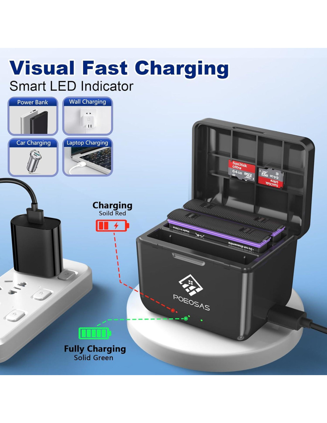 - Batería 360 x4 Segura y Confiable: El cargador de batería 360 x4 de 2 Pack 2500 mAh POEOSAS está equipado con múltiples protecciones de seguridad, incluyendo sobrecarga, sobrecorriente, protección contra sobrevoltaje. Proporcionará protección total para ti y tu dispositivo