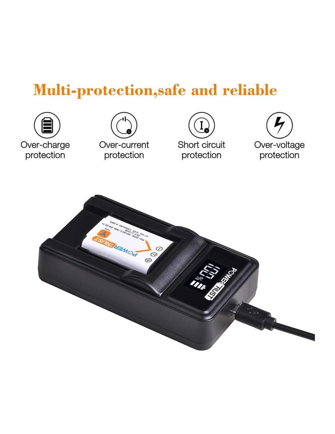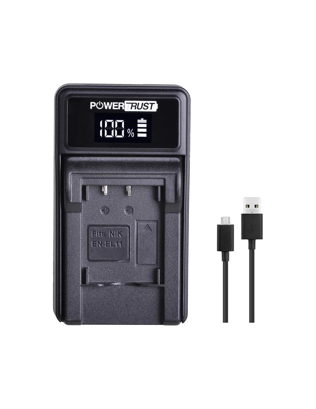 PowerTrust es una empresa profesional que produce y vende baterías de cámaras digitales, cargadores y accesorios para cámaras. PowerTrust se enfoca en la estabilidad, seguridad y compatibilidad del producto. Todos los productos pasan por pruebas del fabricante para asegurar que coincidan con los productos OEM. Proporciona a los clientes baterías de alta calidad y energía confiable. Compatible con Batería Nikon EN-EL11; Compatible con Batería Sony NP-BY1; Compatible con Batería Pentax D-Li78; Compatible con Batería Olympus Li-60B Para OLYMPUS FE-370; Para Pentax Optio S1 M50 M60 V20 W60 L50 W80; Para Cámara de Video Sony HDR-AZ1/AZ1VR/AZ1VB/AZ1VW; Para Cámaras Nikon D40 D40X D60 D3000 D5000 y Más 2x Baterías de reemplazo NP-BY1/EN-EL11, 1x Cargador LED USB de reemplazo, 1x Cable USB. Cargador Rápido USB Entrada: 5V-1A 5W Salida: 4.2V-0.7A 3W carga con un cargador de pared USB, cargador de coche, Fuente de Energía Portátil, o adaptador de celular. Con entrada micro-USB común, puedes recargar tu batería donde y cuando quieras.